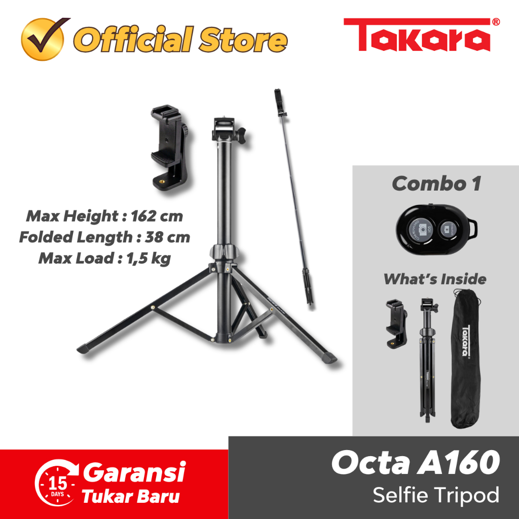 Takara OCTA A160 Multi Function Tripod Selfie Stick Light Stand