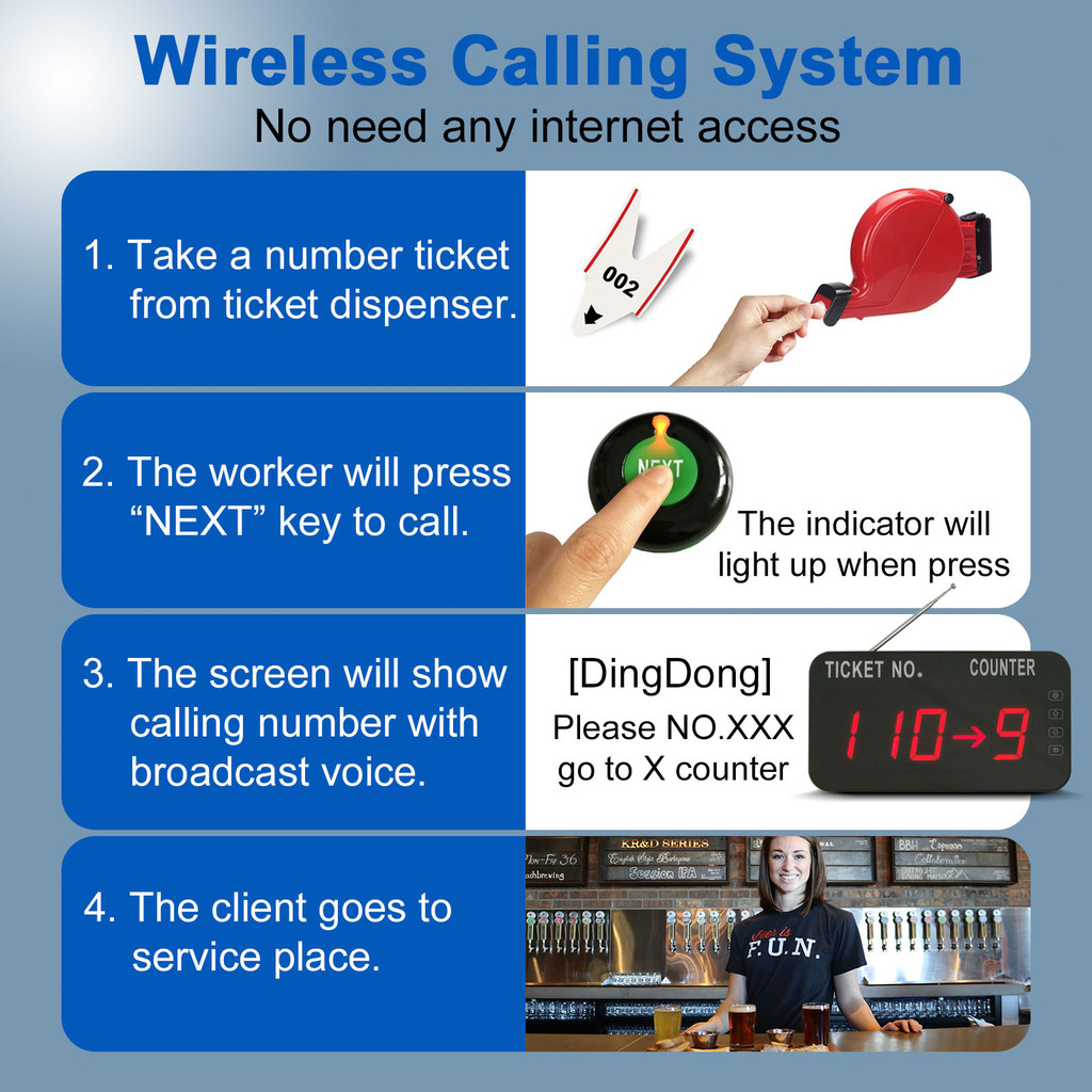 Take A Number System Queue Wireless Calling System Bank With Ticket Dispenser Loud Speaker Voice