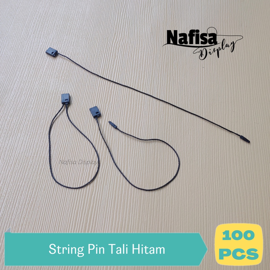 Tali Hang Tag Lock Loop Pin Hitam Untuk Label Pakaian Isi 100 Pcs String Nafisa Display