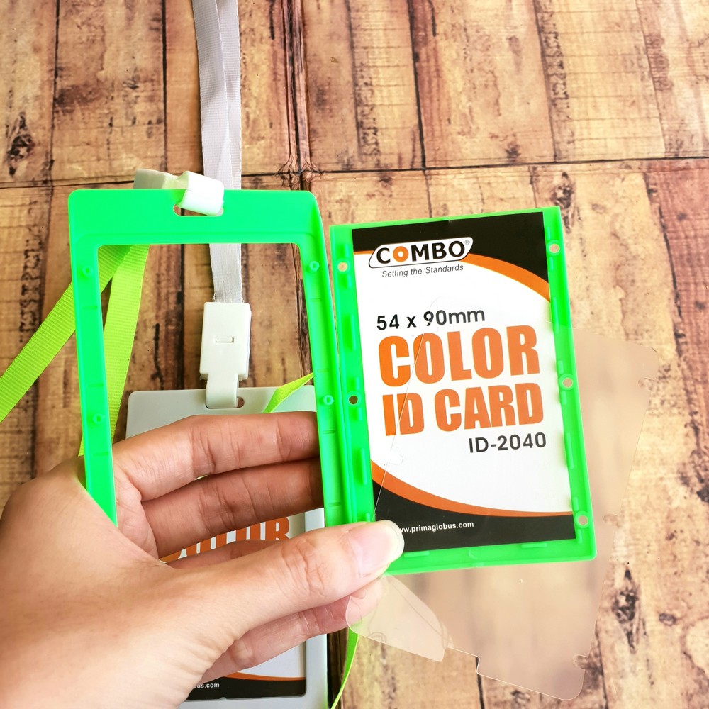 Tali ID Card Nylon 1cm dengan Tempat ID card Merek Combo ID-2040 -Tali dan Card Case isi 25 set