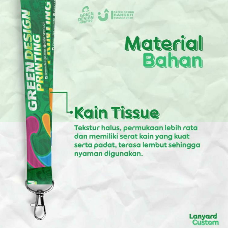 Tali Id Card / Lanyard Custom - Bahan Tali Tissue (Premium Quality) Min.6pcs lanyard custom id card lanyard custom