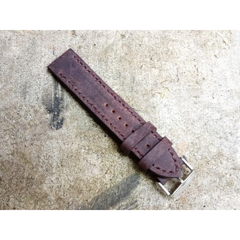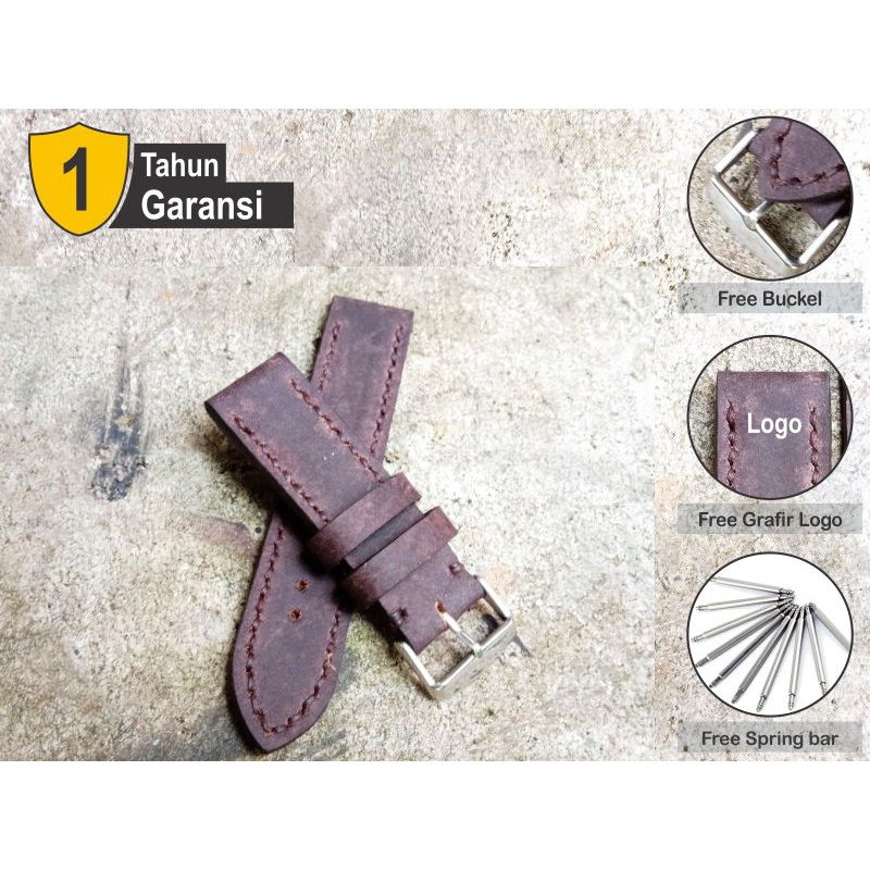 Tali Jam Tangan Kulit Asli Sapi Crazy Horse Custom Grafir Logo Warna Brown Tj151022 Garansi