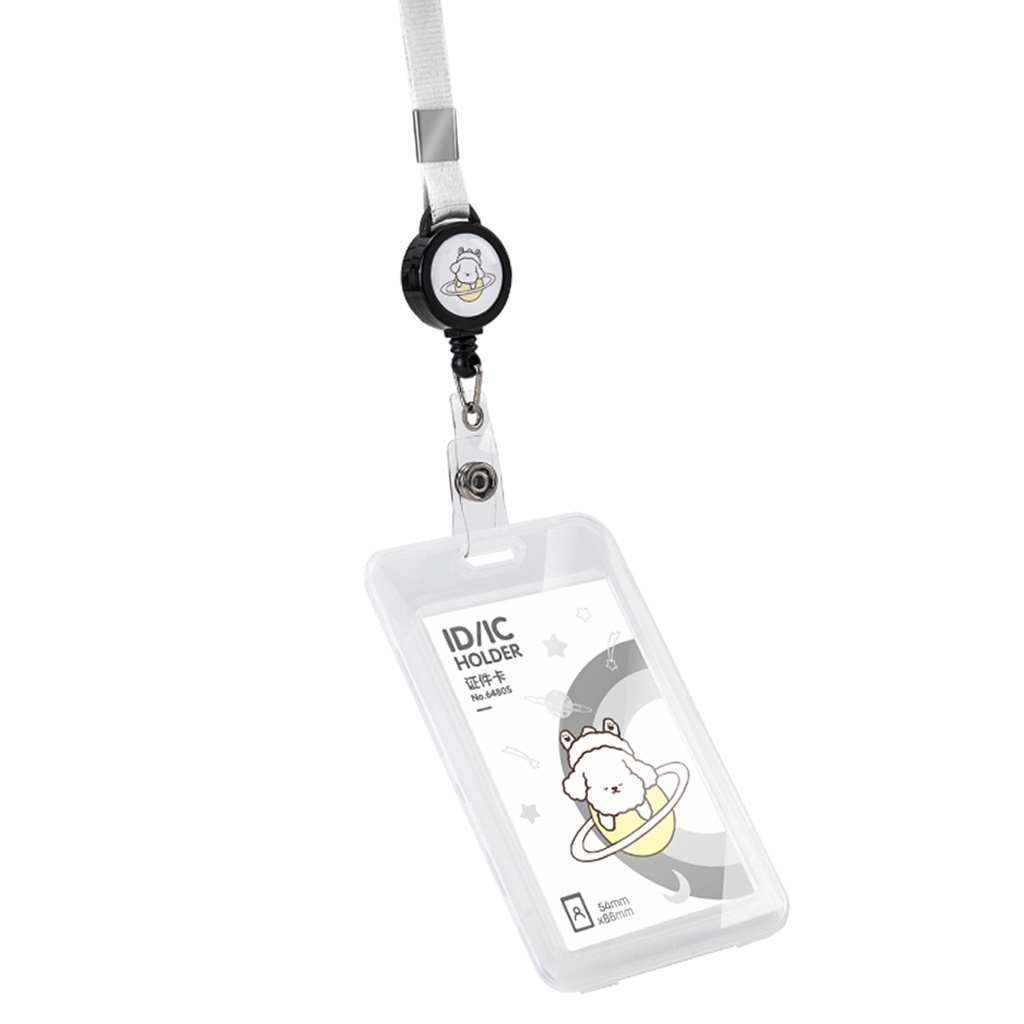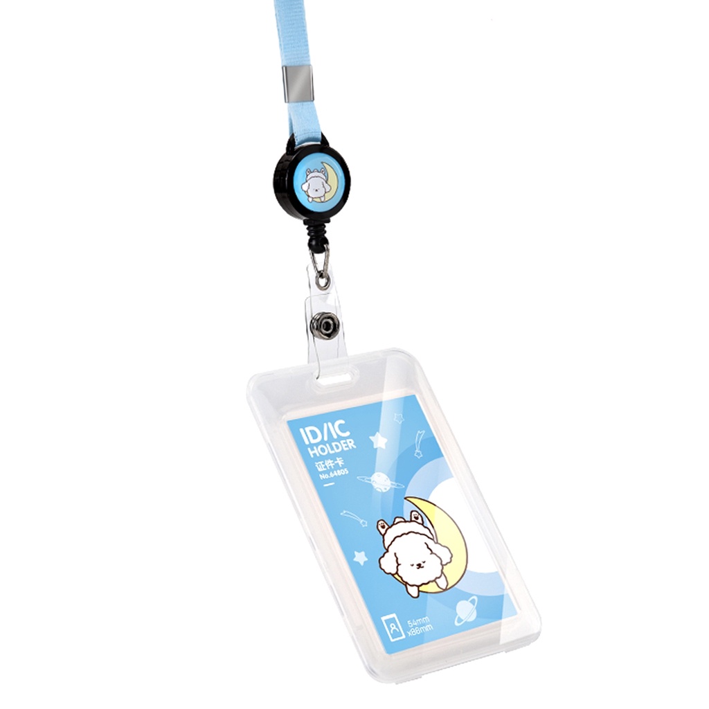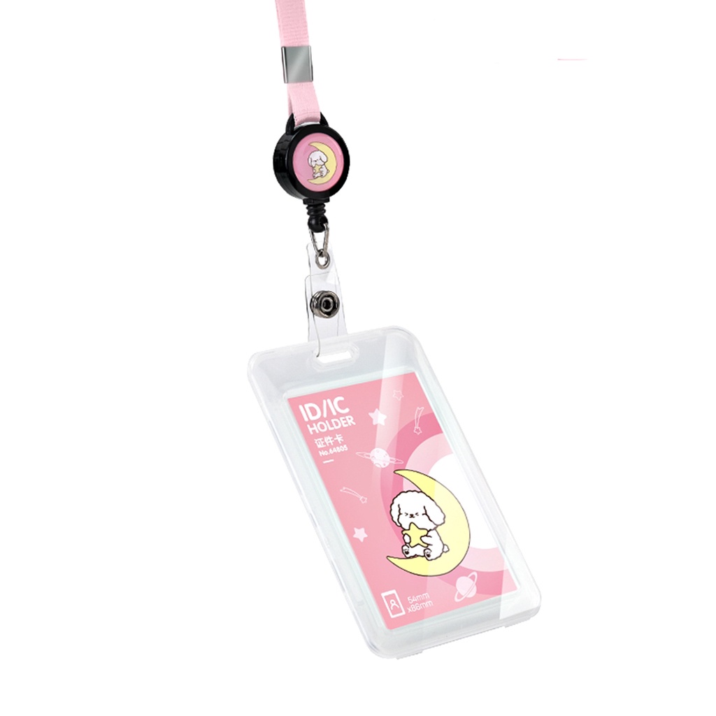 Tali Name Tag Kartu Tanda Pengenal Doodle Warna Putih/Pink/Biru Lanyard Tarik Import