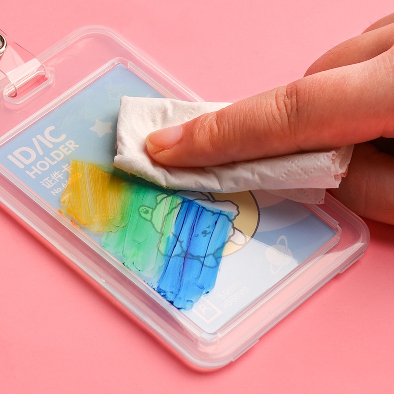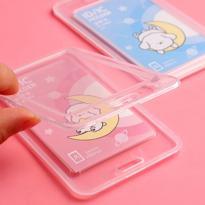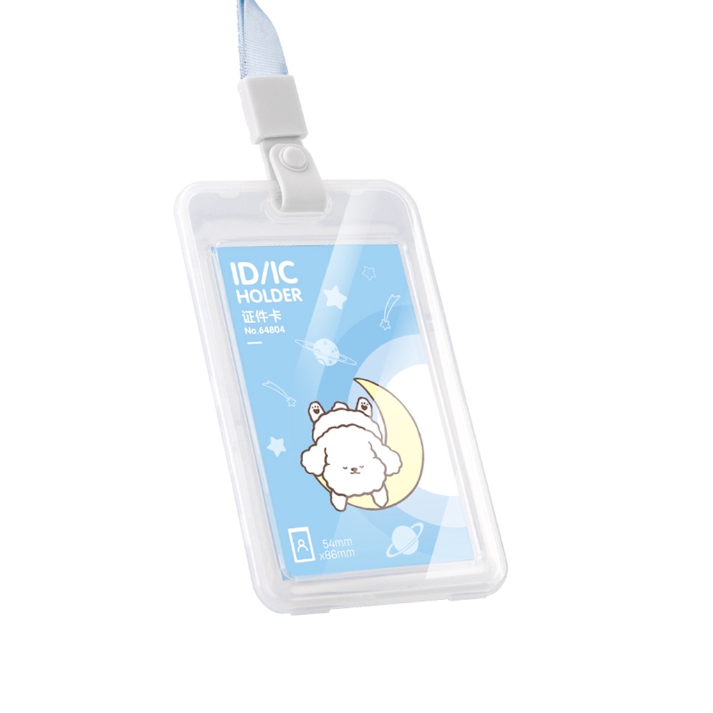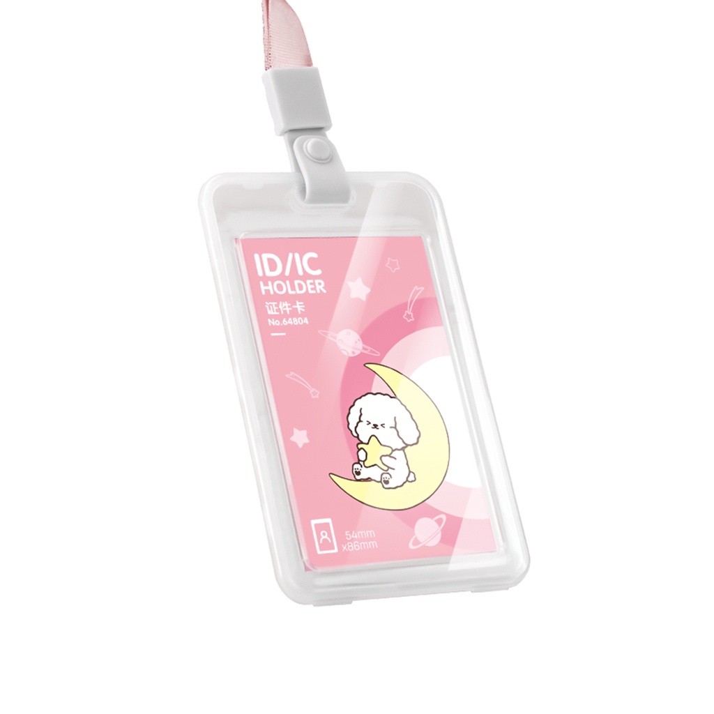 Tali Name Tag Kartu Tanda Pengenal Doodle Warna Putih/Pink/Biru Lanyard Tarik Import