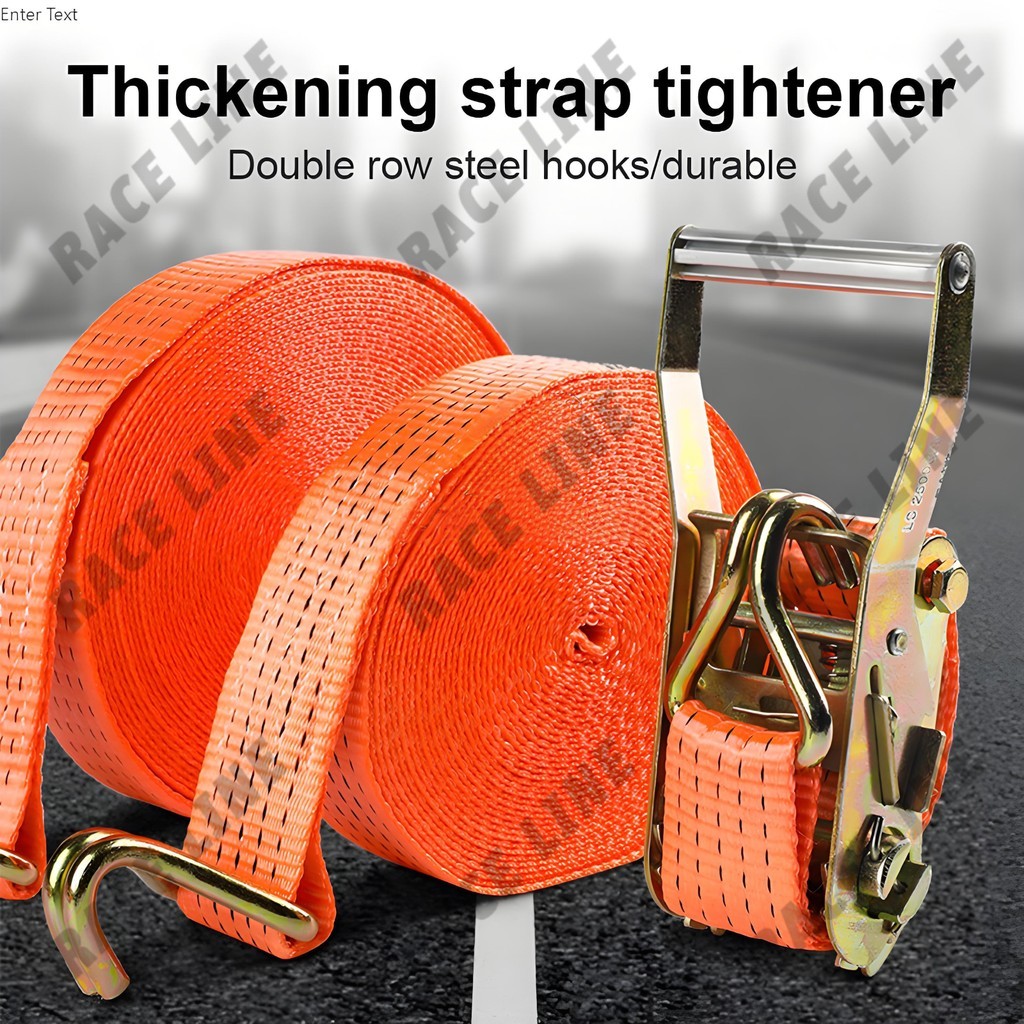 Tali Ratchet Tie Down 10 Ton 4M 6M 8M 10M Thickened Webbing Belt Lashing Track Trek Belt Double Hook Cargo Strap Tali Pengikat Barang Mobil Truk Pick Up Trailer COD