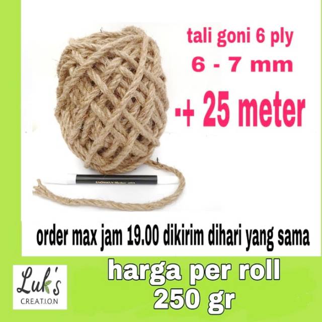 Tali goni 6 ply 7 mm 250gr up to 25 meter - tali tampar goni - tali rami - hemp rope - jute rope