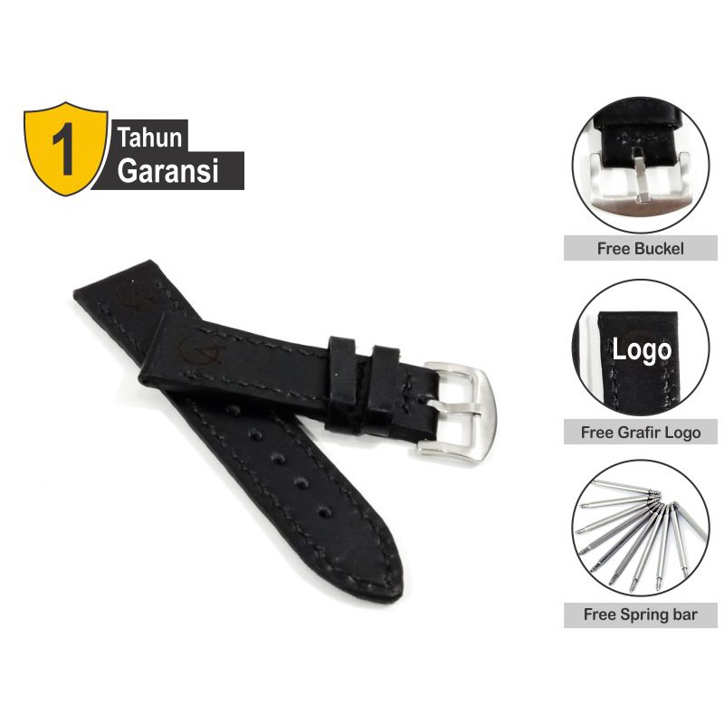 Tali jam tangan kulit asli sapi pullup Custom Grafir Logo Garansi 1 tahun