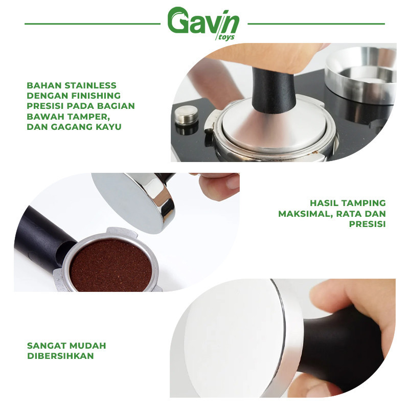 Tamper Kopi Kayu 58mm - Tamper kayu stainless 58 mm - Barista Tools - Penekan Kopi - Wooden Coffee Tamper