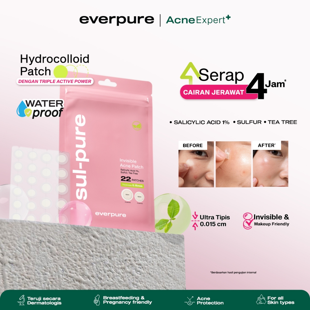 EVERPURE Sulpure Invisible Acne Patch - Hydrocolloid Patch Ultra Tipis Serap Jerawat Lebih Cepat & Efektif BPOM