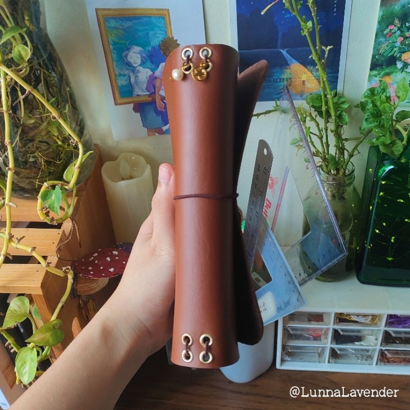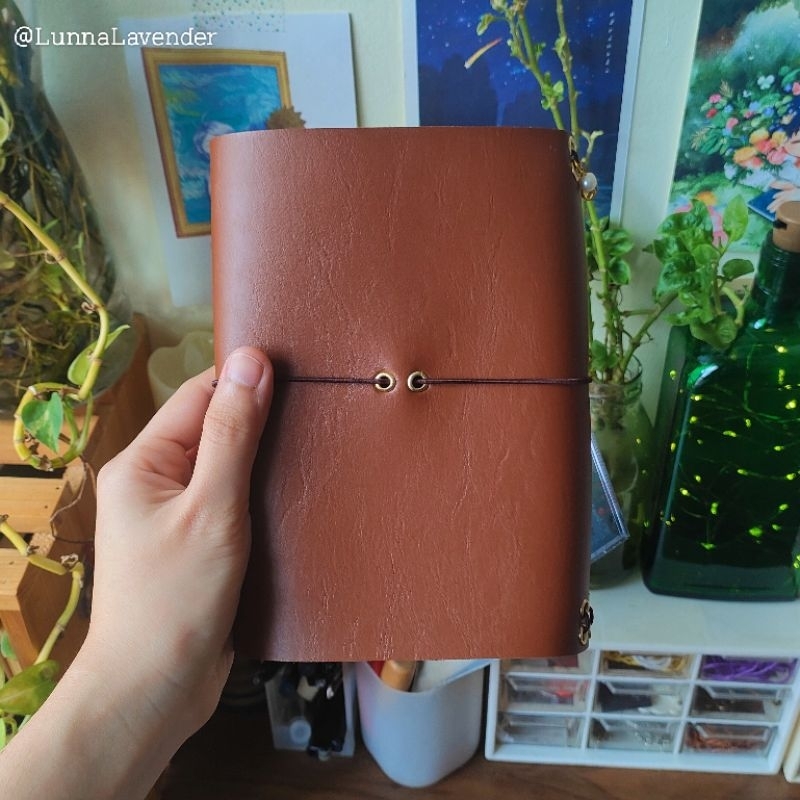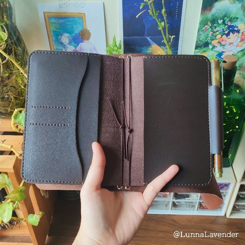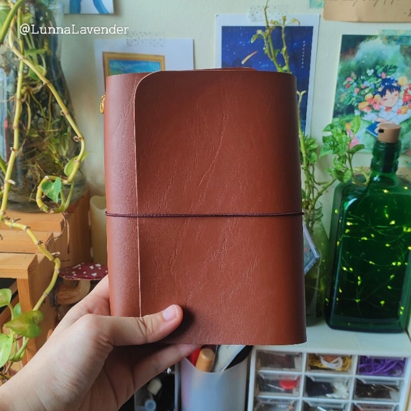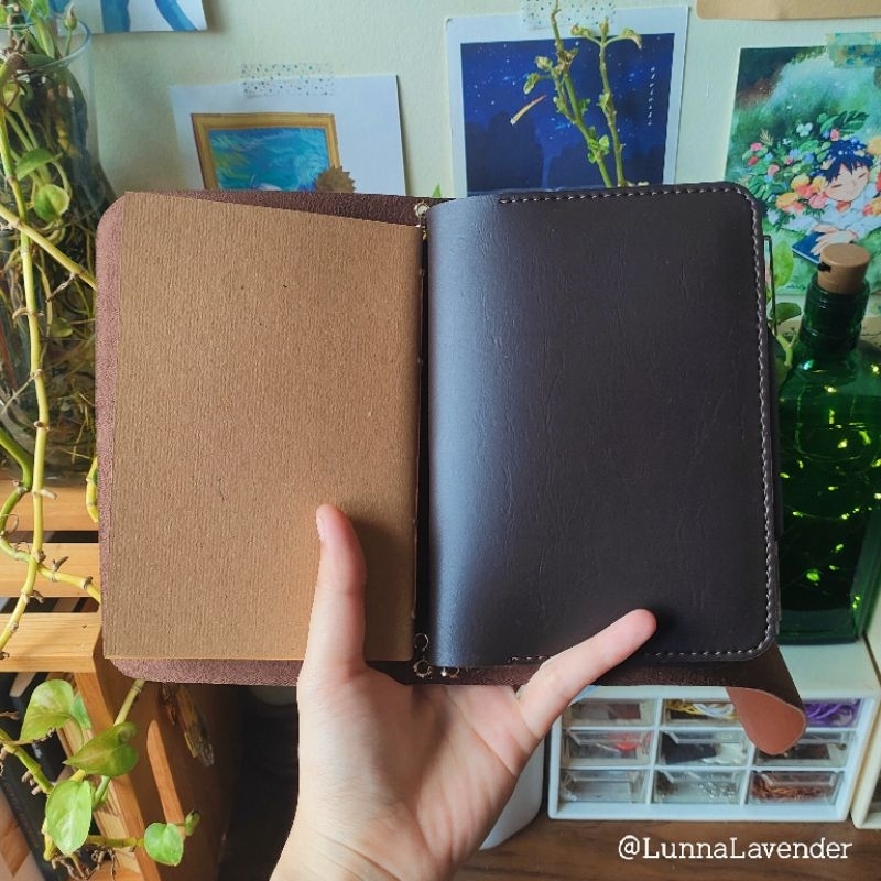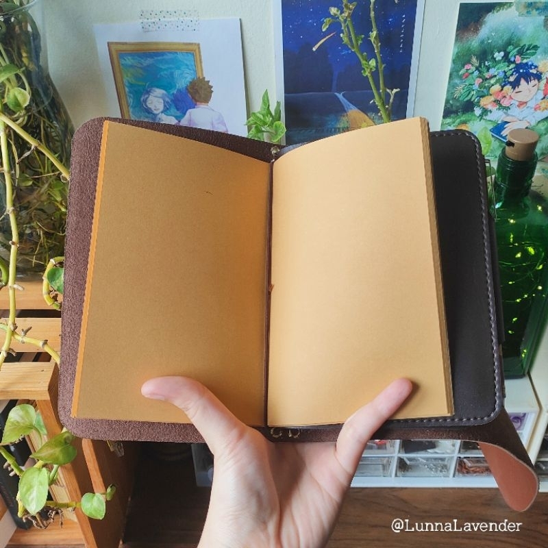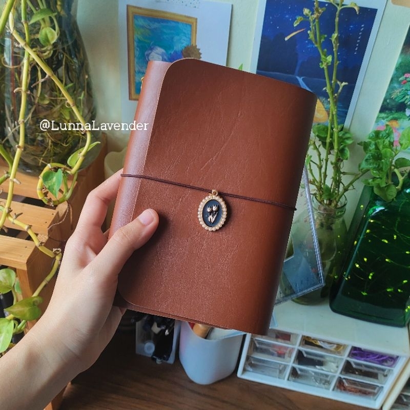 Tan Brown Pocket Traveler's Journal with Leather Insert and Charm Pendant A6