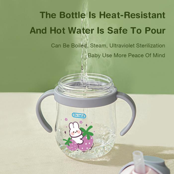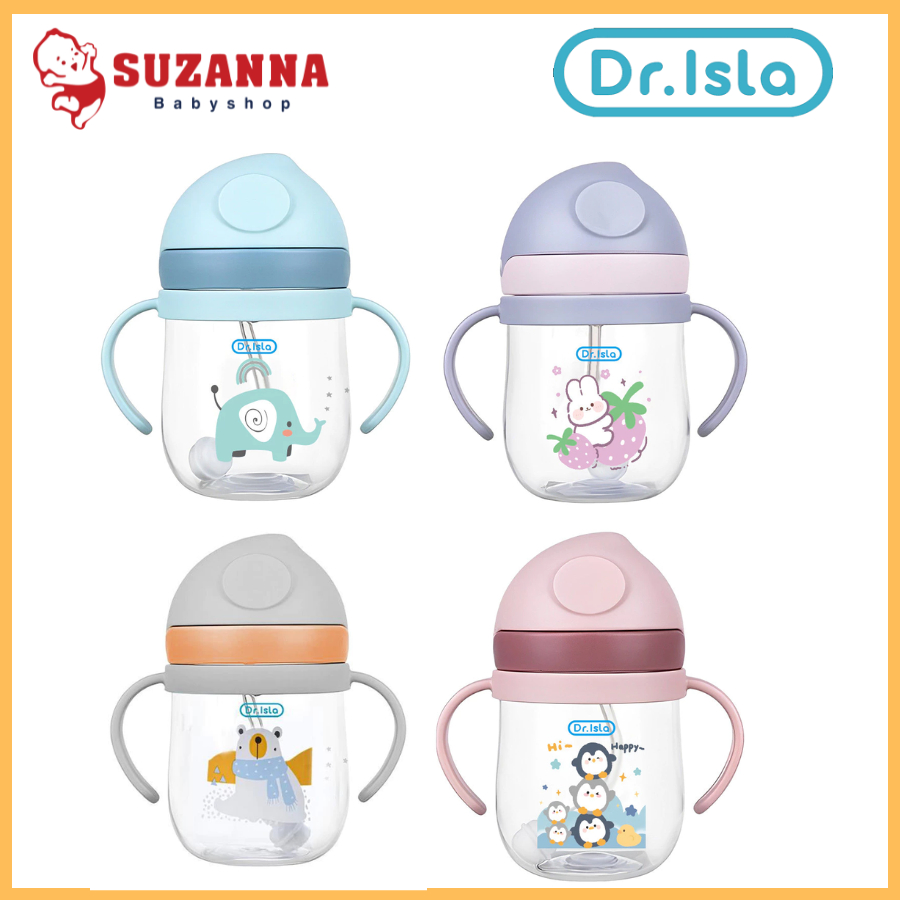 Dr.Isla BY01 Botol Air Minum Bayi 250ml Silikon Anti-Kolik dengan Pegangan & Desain Karakter Lucu untuk Bayi Baru Lahir dan Anak 360° Tidak Bocor BPA Free