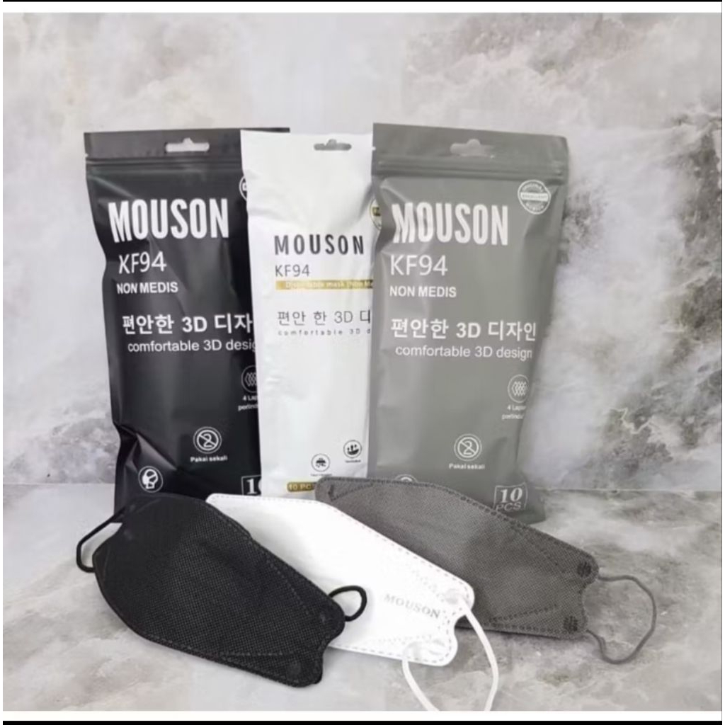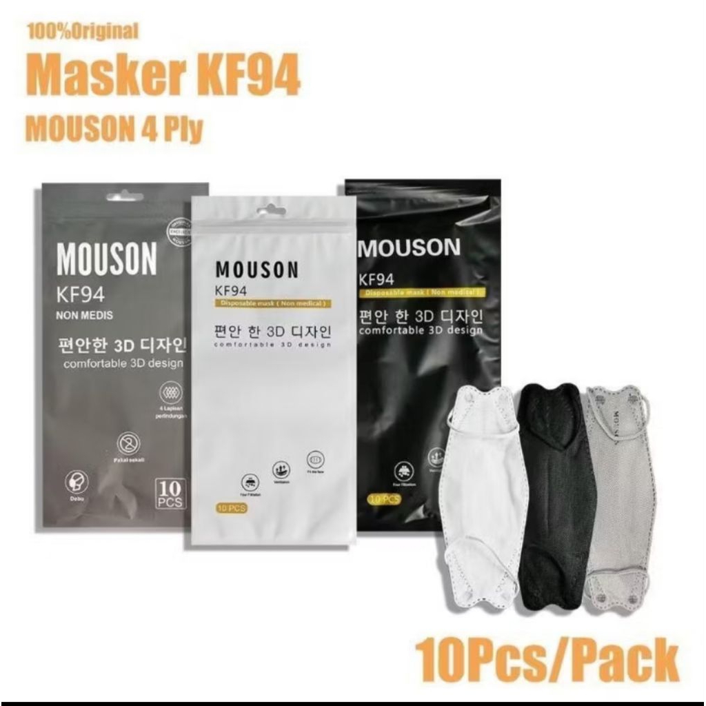 MASKER KF94 MERK MOUSON ISI 10PCS HITAM PUTIH GREY MURAH
