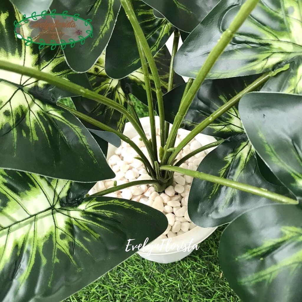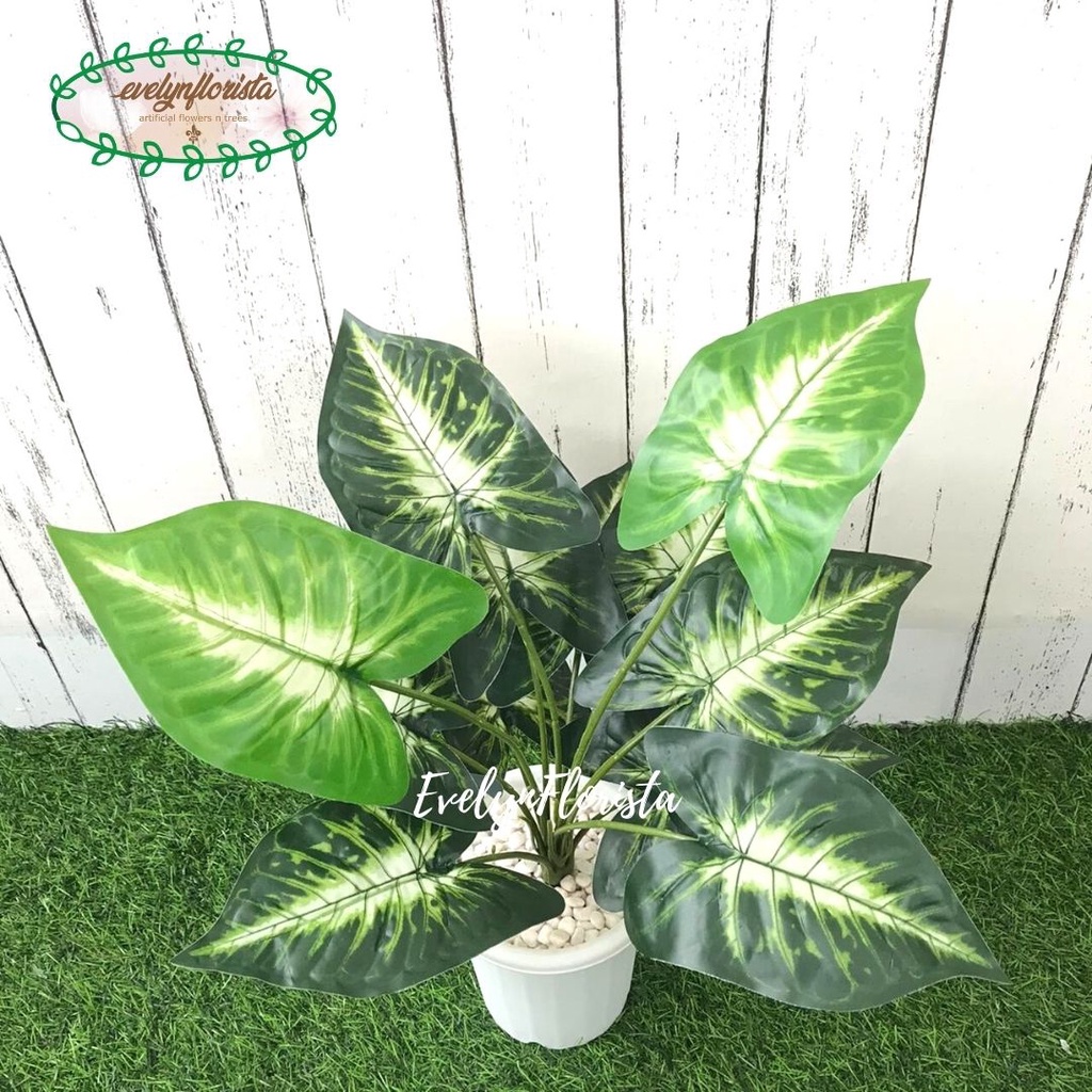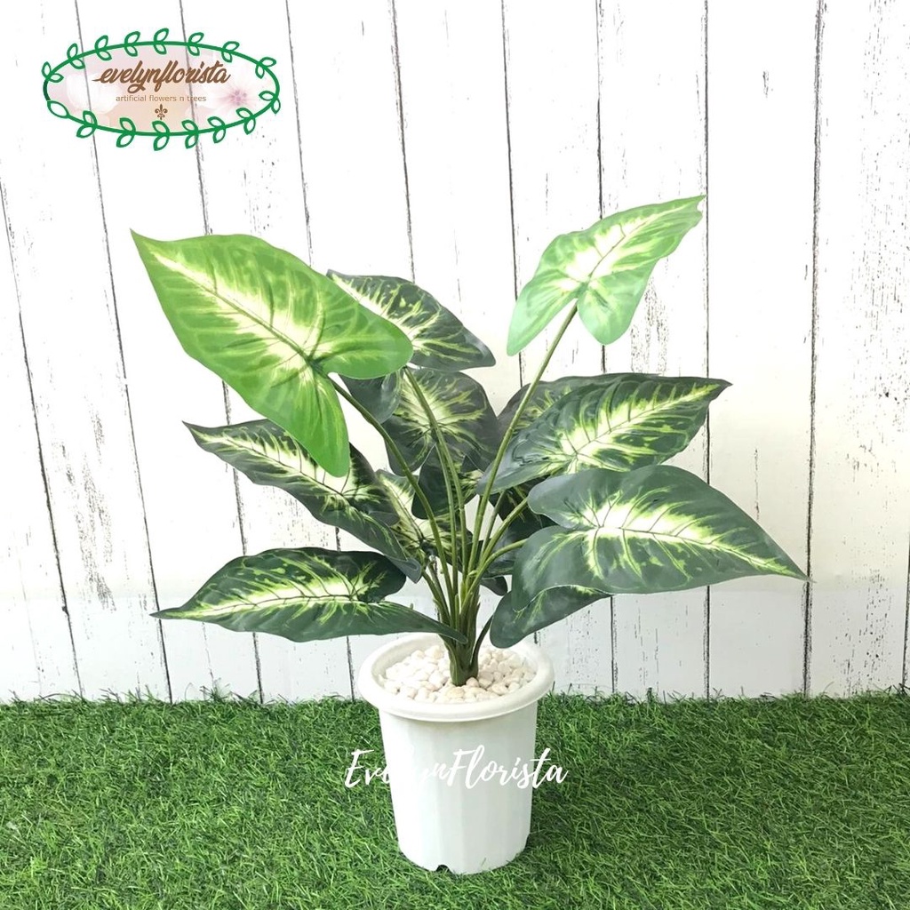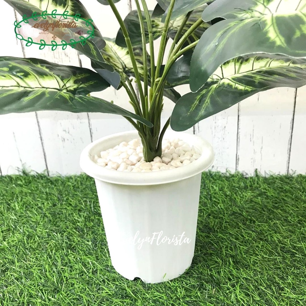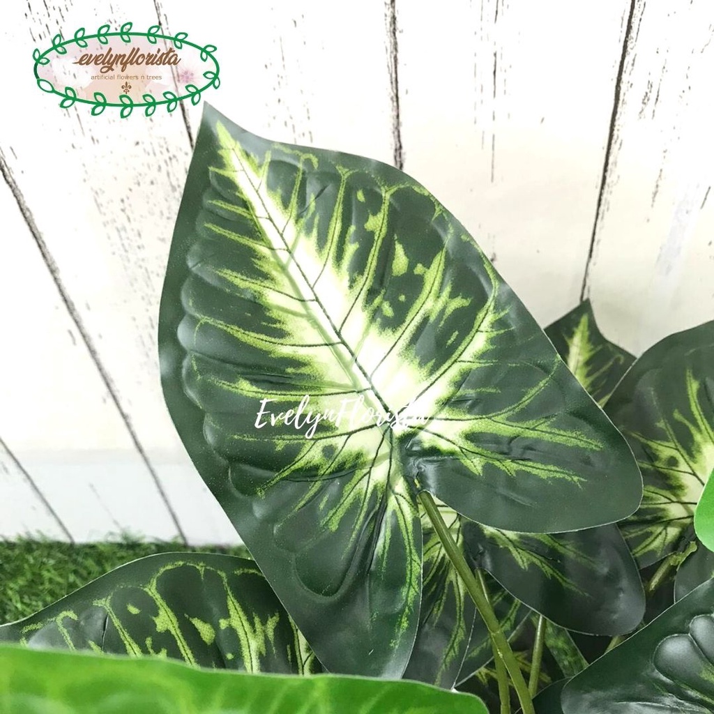 Tanaman Daun Bahagia Hijau X12 Semi Latex Artificial Pot Yogap Plastik Pohon Hias Dekorasi Meja