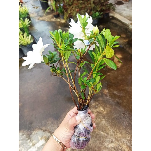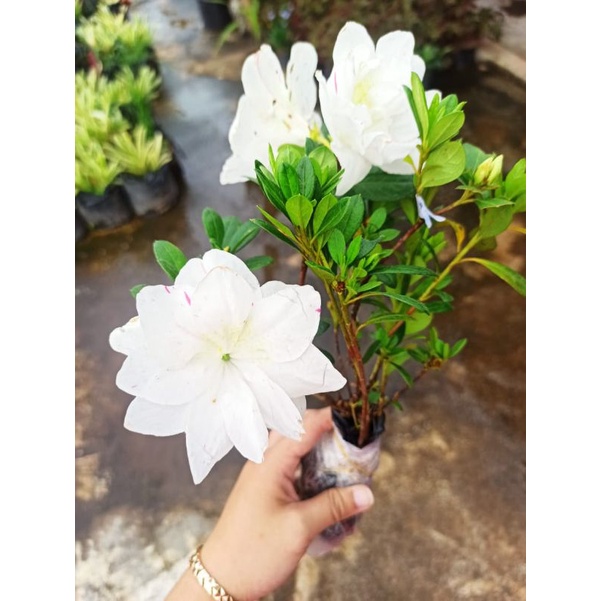 Tanaman Hias Azalea Tumpuk Bunga Putih (sudah berbunga)