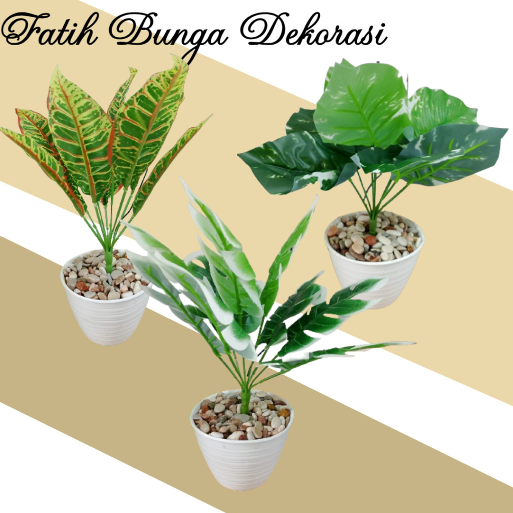 Tanaman Hias Daun-Daun Talas/Tanaman Artifisial/Lengkap dengan Pot Keramik