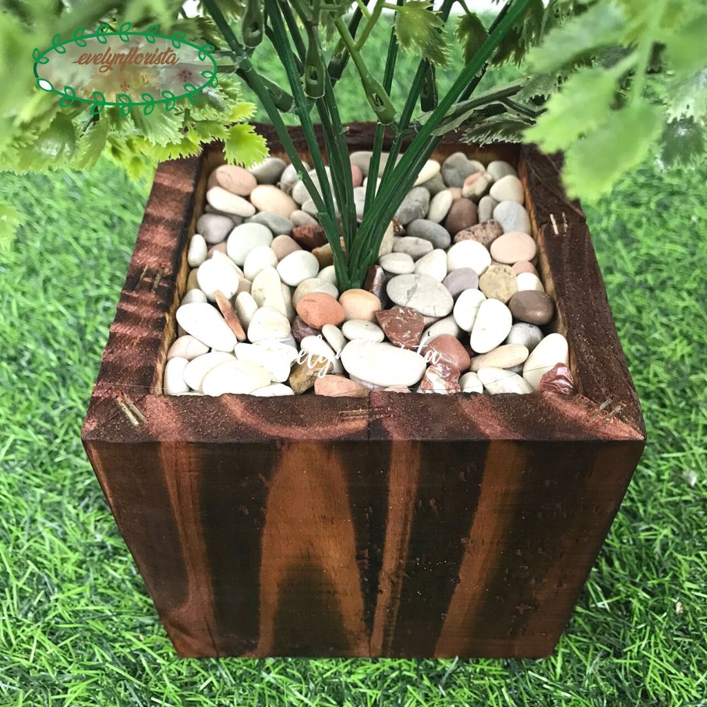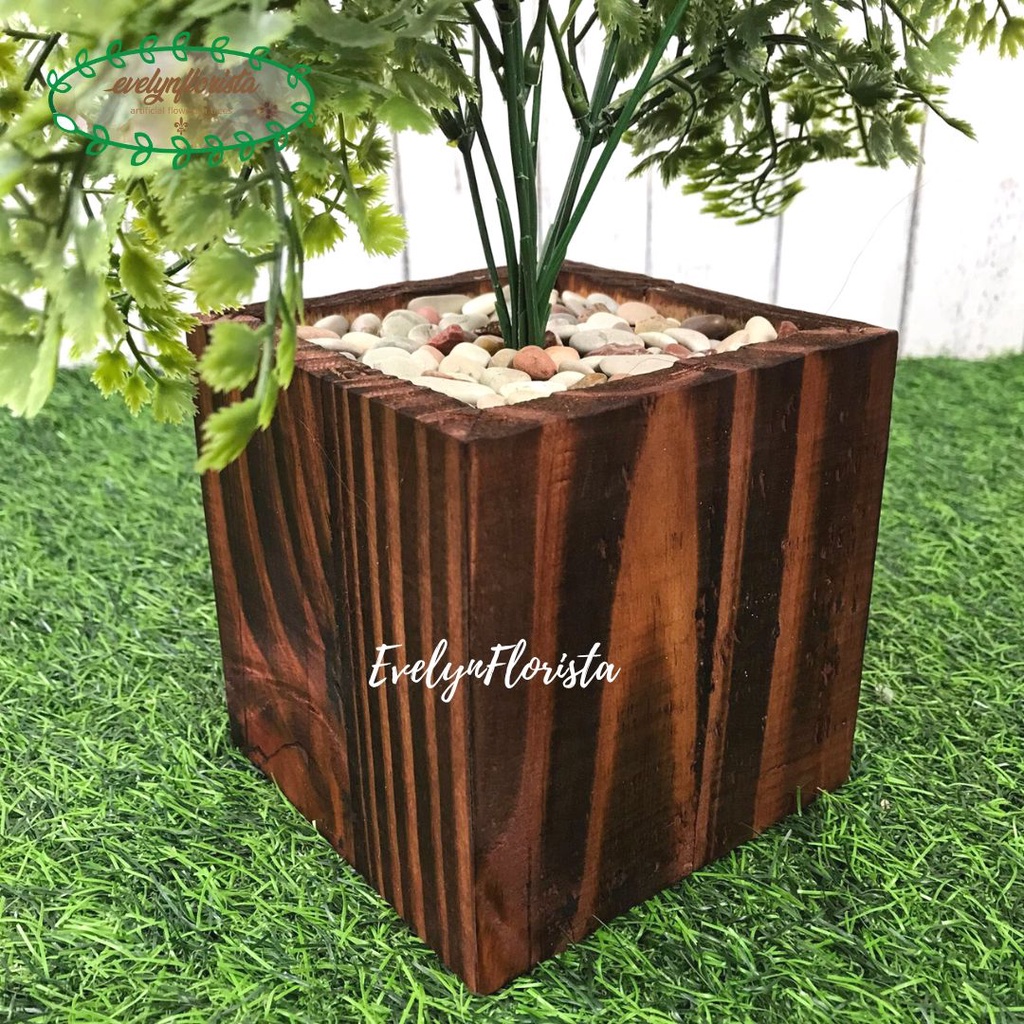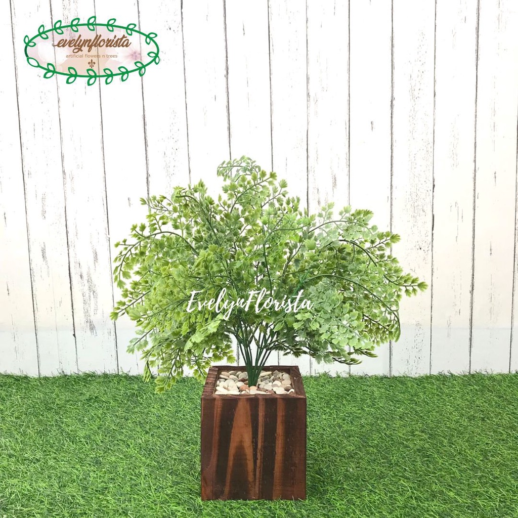 Tanaman Hias Daun Tapak Ikan Pari Latex Artificial Pot Kotak Motif Kayu Pohon Plastik Hijau Pajangan Dekorasi
