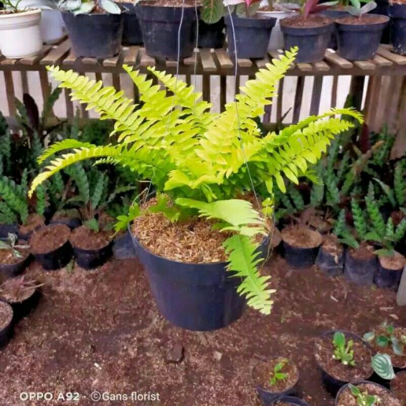 Tanaman Hias Hidup Pakis Boston-Kokedama Pakis Dwarf Lady Farn