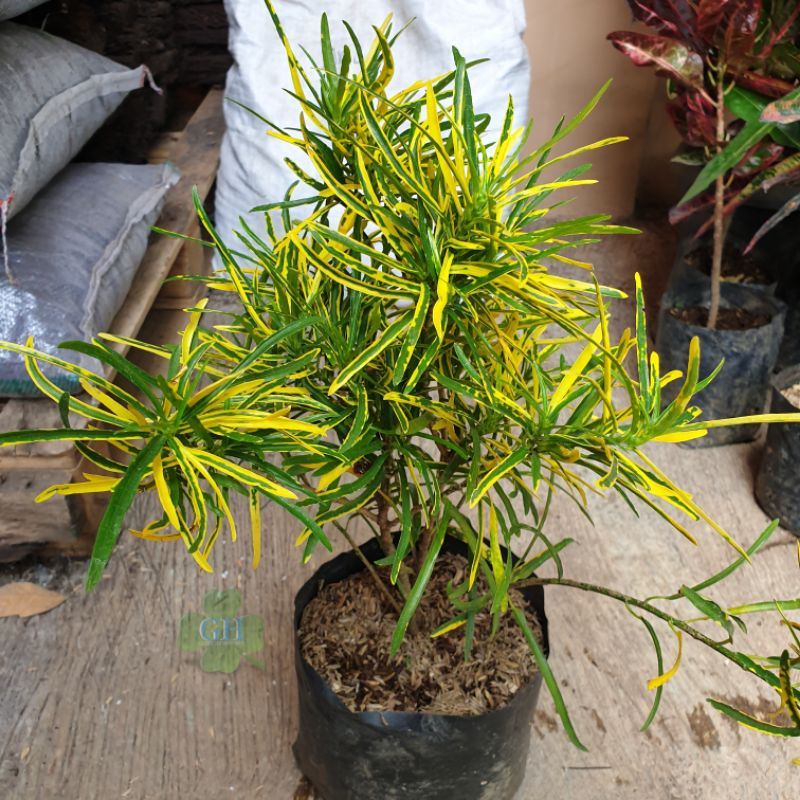 Tanaman Hias Puring Teri Kuning Garis Hijau Codiaeum Variegatum