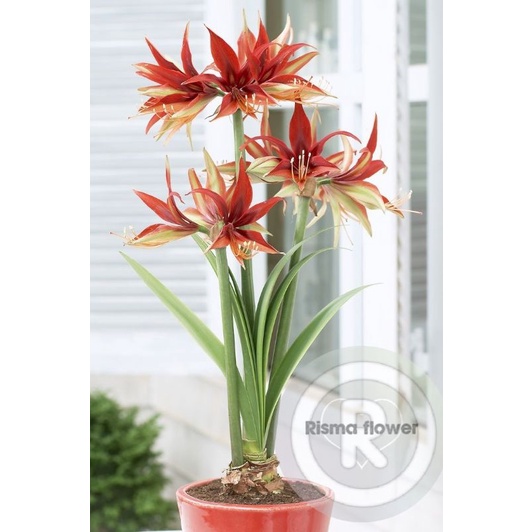 Tanaman hias Bakung amarilis bunga Golden red ( bunga amarilis - pohon hias hidup )