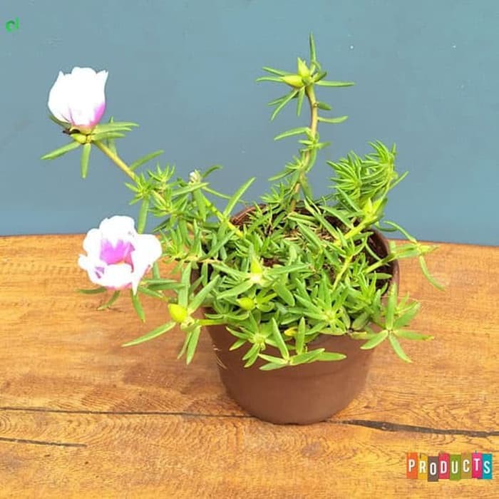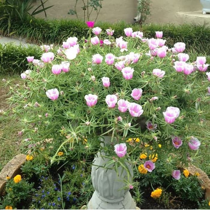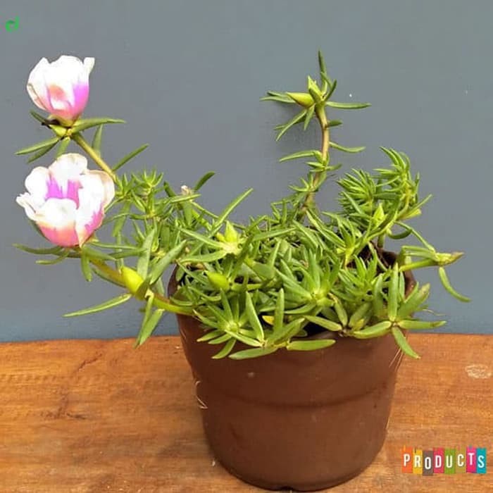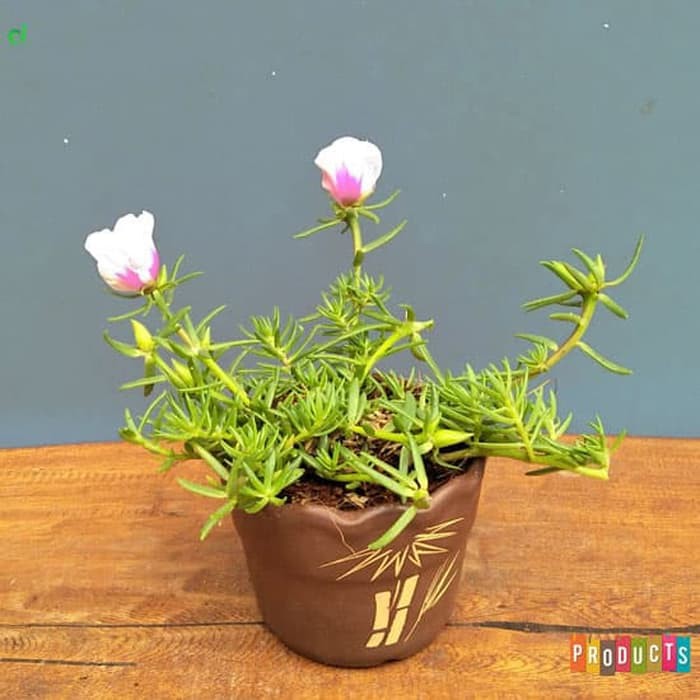 Tanaman hias Sutra bombay bunga batik ungu besar - Portulaca grandiflora Samba Bicolor | Jenis tanaman hias berbunga yang dapat dijadikan komponen taman atau tanaman pot yang tahan panas