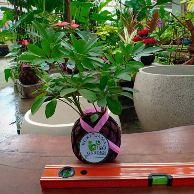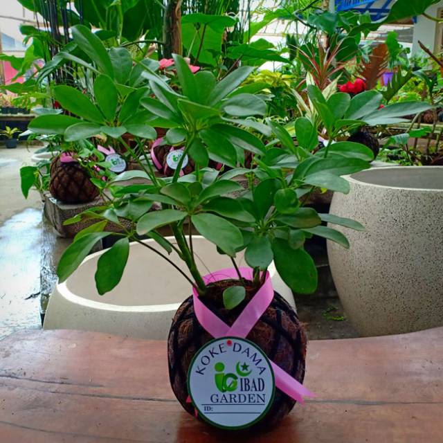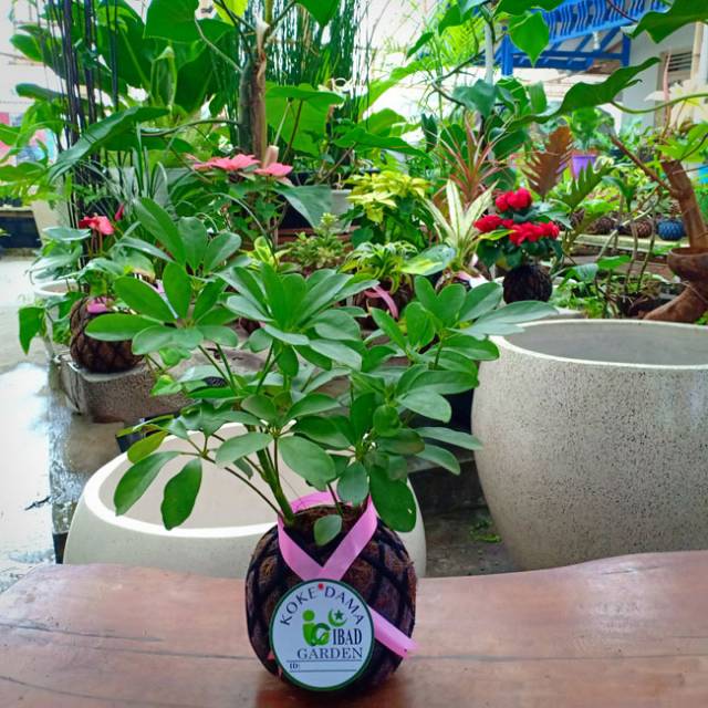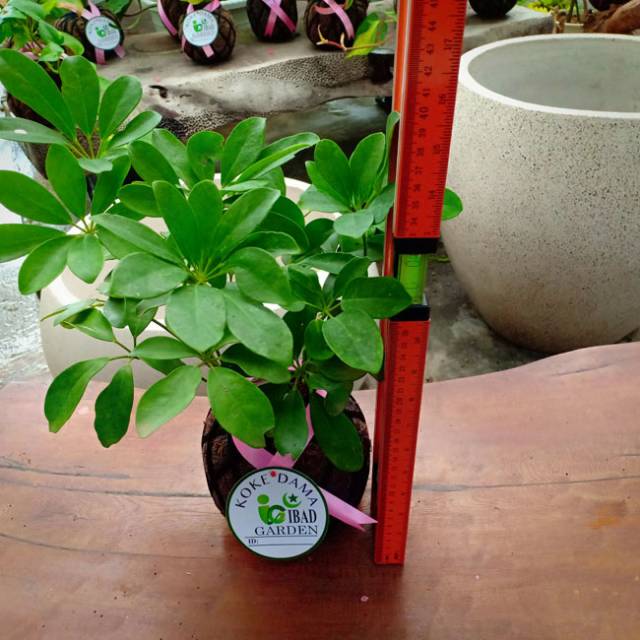 Tanaman hias kokedama Walisongo daun hijau Schefflera arboricola | Jenis tanaman hias yang bisa ditempatkan di dalam atau luar ruangan yang bisa menyerap racun dan polusi udara