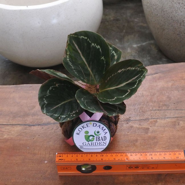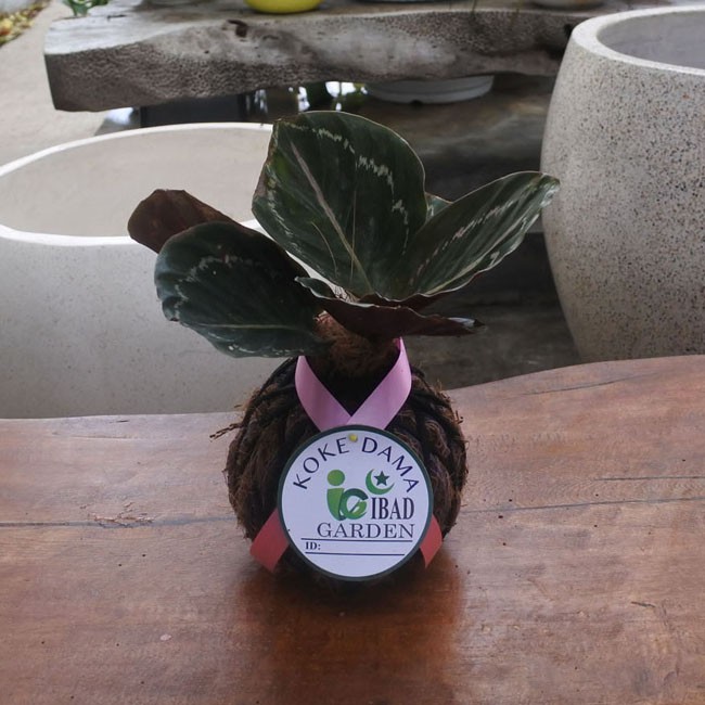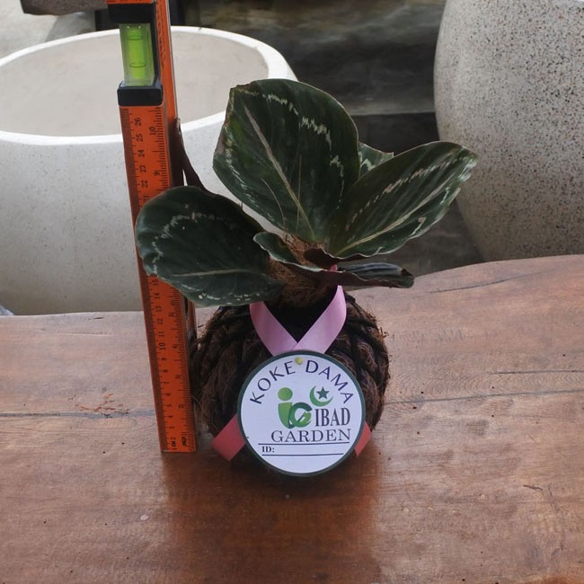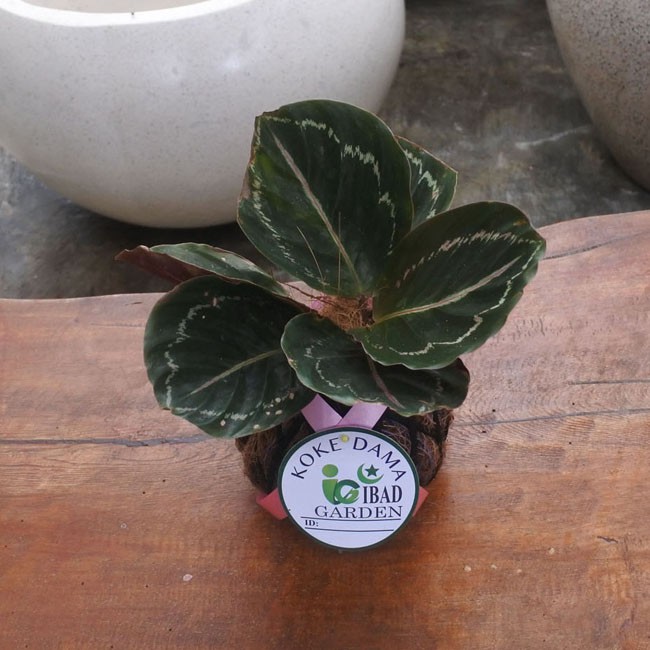 Tanaman indoor KOKEDAMA Calathea black lipstik garis putih