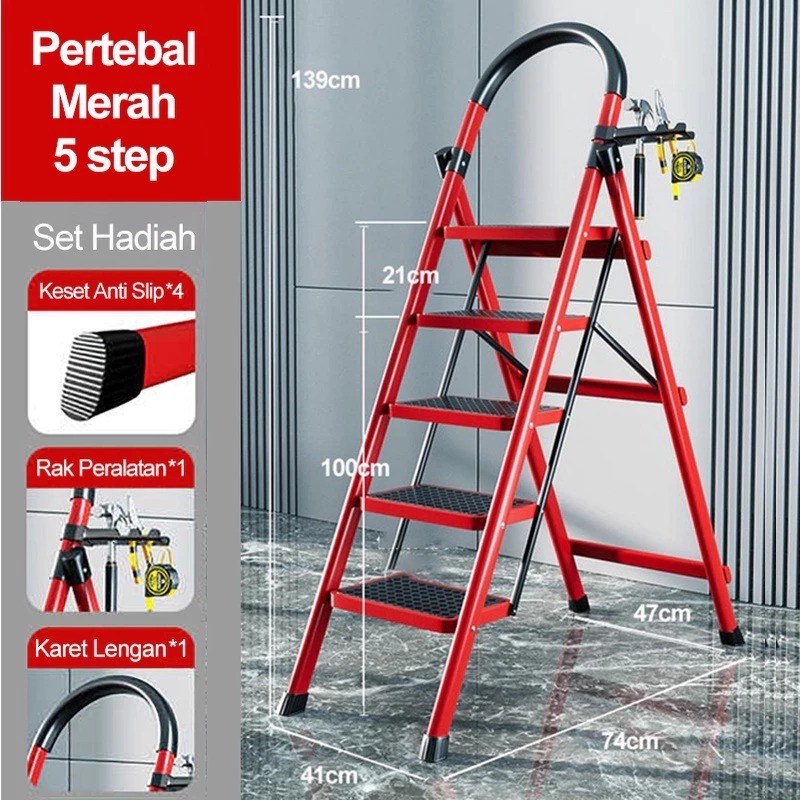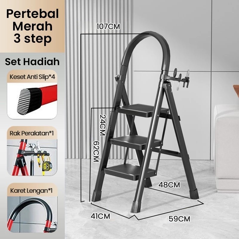 Tangga Rumah Lipat Tangga Besi 3/4/5/6 Step Household Steel Ladder Tangga Lipat Aluminium Pegangan Tangan Tangga Bisa Dilepas