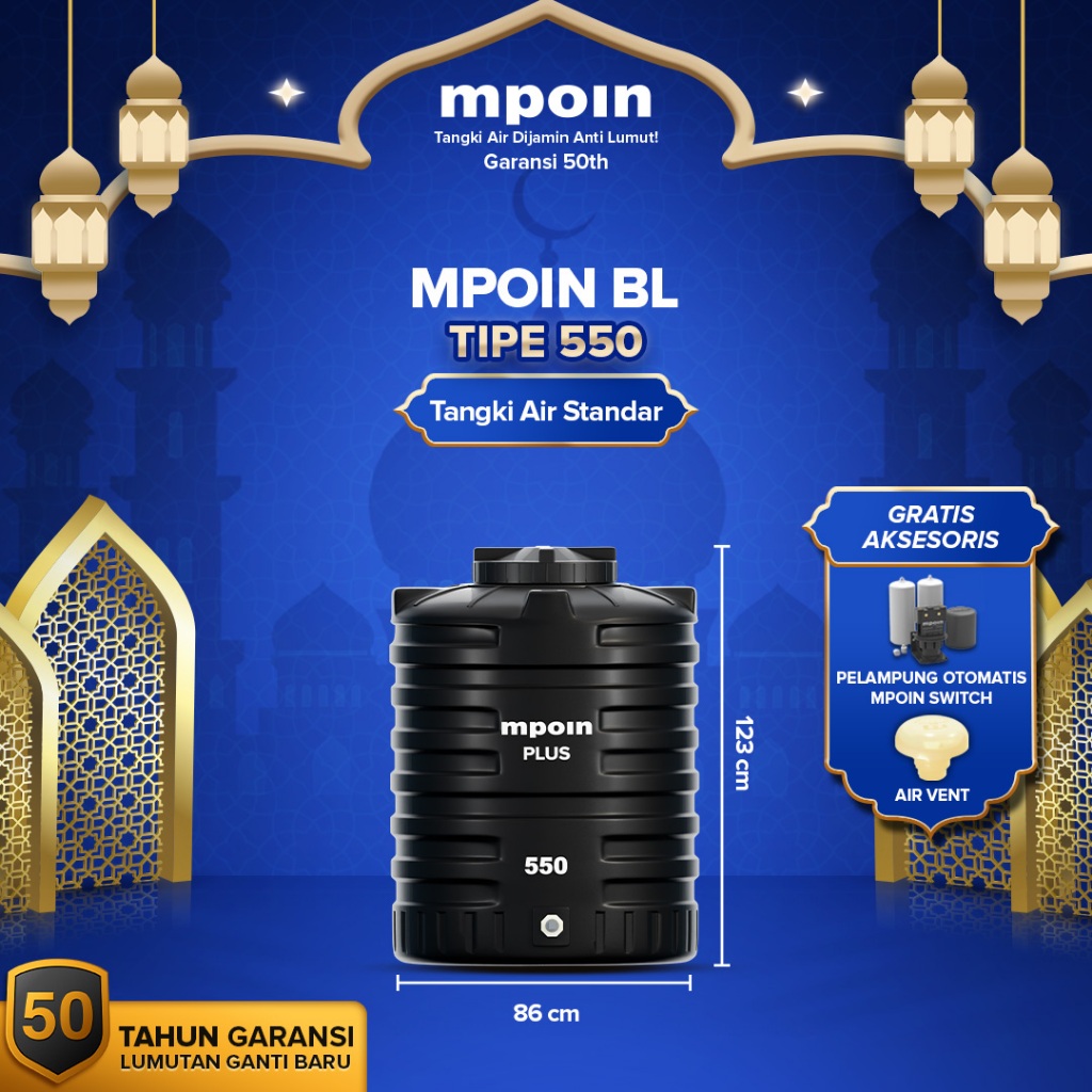 Tandon Toren Tangki Air MPOIN Standar 250 - 3400 Liter Wave/BL Anti Lumut & Food Grade Garansi 50th