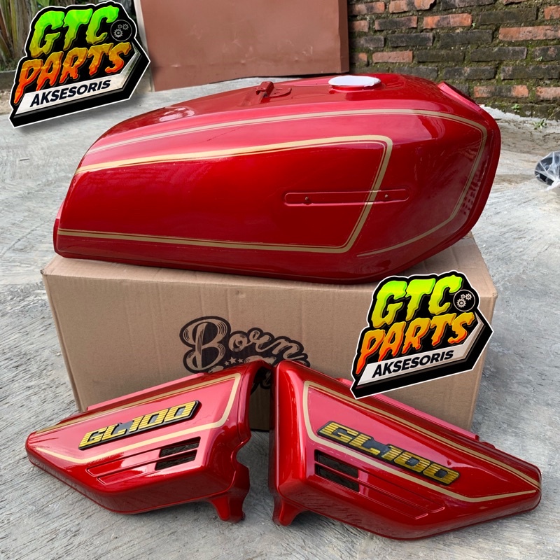Tangki gl 100 pres pabrik warna merah maron set bok aki set striping emblem gl 100 import
