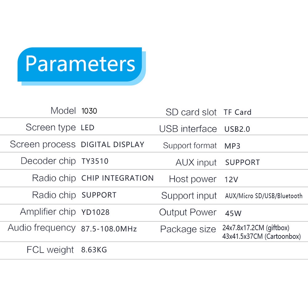 Tape Audio Mobil single din Bluetooth Version Multifungsi Bluetooth USB MP3 FM Radio 1030