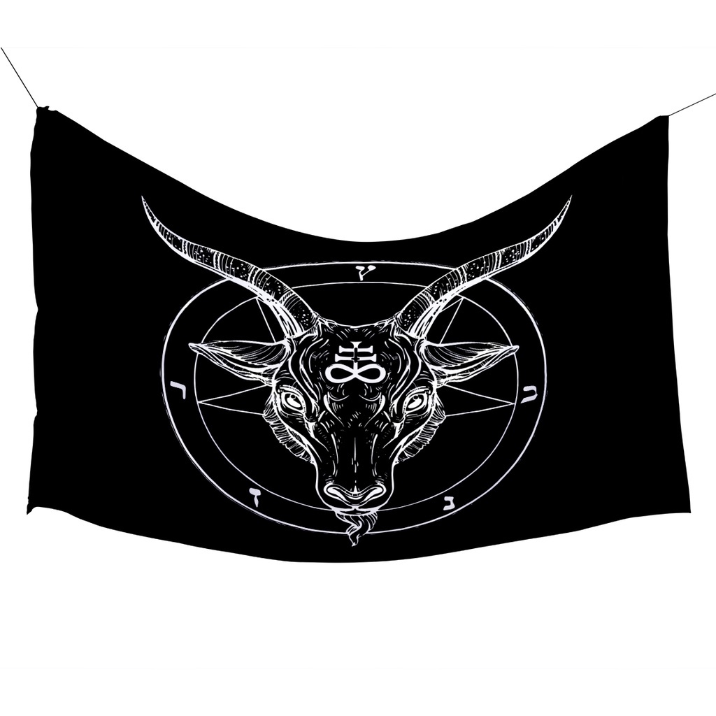 Tapestry Bendera Baphomet Satanic Goat Head Satan Symbol Tarot Dekorasi Kamar Tidur Aestetik