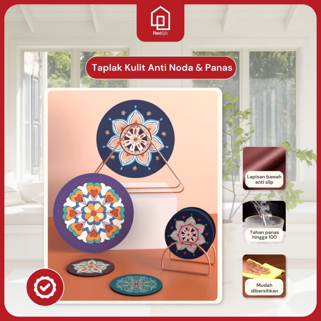 Taplak Alas Gelas Piring Bulat Kulit 12x12cm Premium Anti Air Tahan Panas