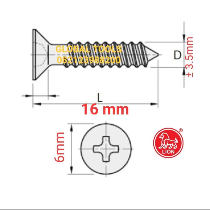 Tapping screw 6x5/8 sekrup FH skrup kayu skrup 1.5 cm skrup s6 murah moon lion sekrup galvanis 6x15 scrub flat head verseng persing