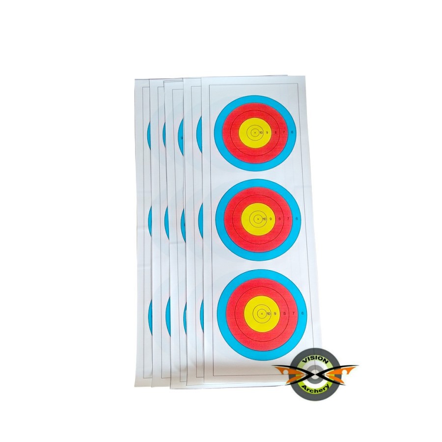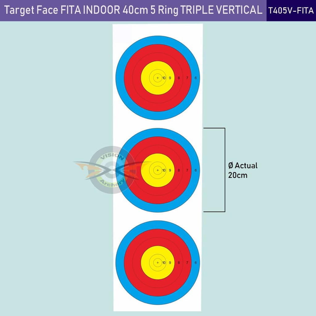Target Face Fita 40cm 5 Ring Triple Vertical (3 Spot) Print Panahan Face Target - Vision Archery