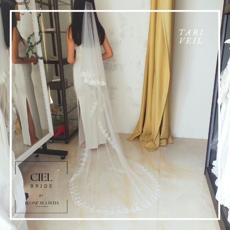 Tari wedding veil panjang 3m berekor renda kecil kerudung pengantin slayer by CIEL BRIDE