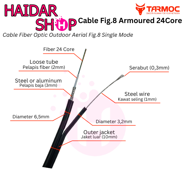Tarmoc Fiber Optic Cable Fig 8 Armoured 24 Core 2000m | Kabel Fiber Optik Fig8 armored Indoor Outdoor 24C 2km