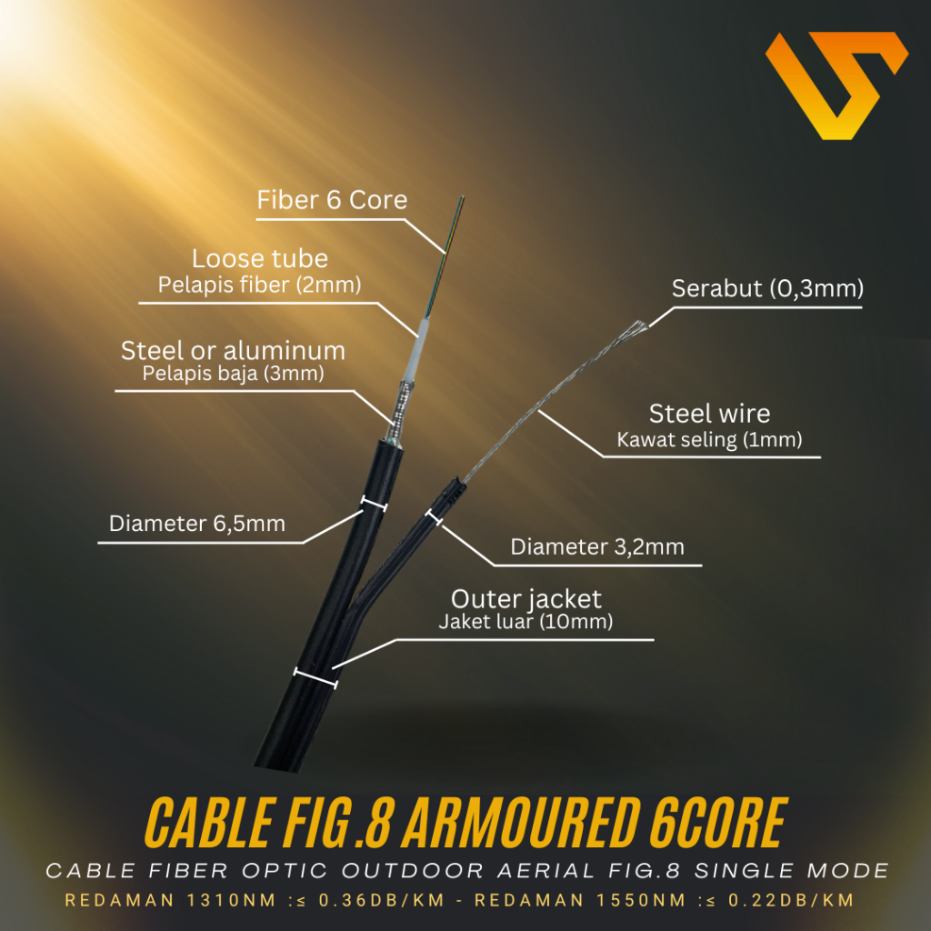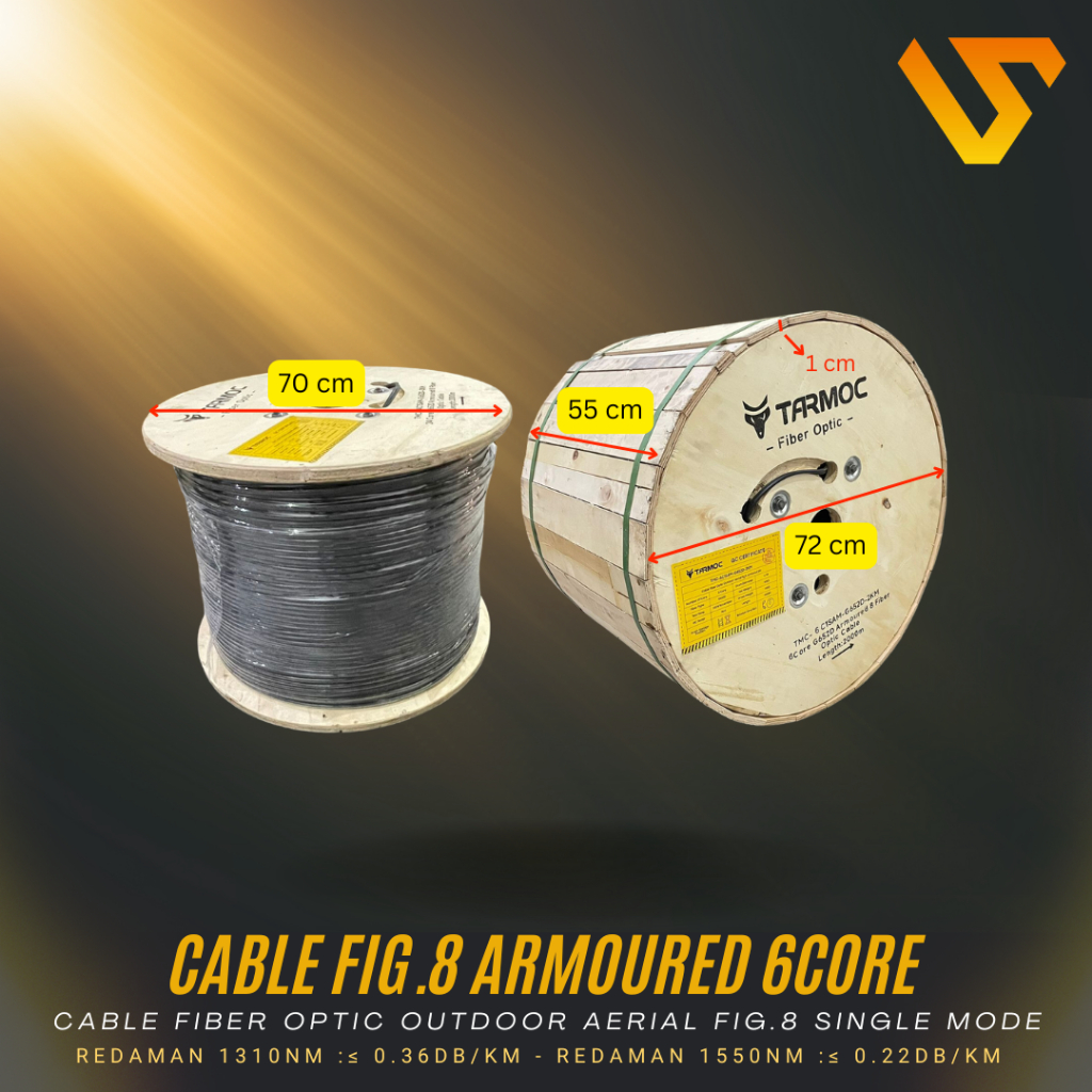 Tarmoc Fiber Optic Cable Fig 8 Armoured 6 Core 2000m | Kabel Fiber Optik Fig8 armored Indoor Outdoor 6C 2km