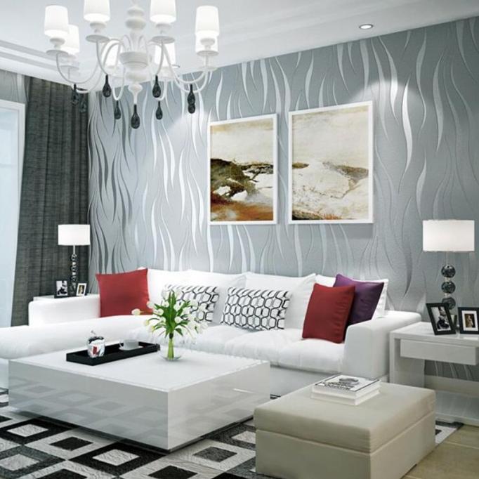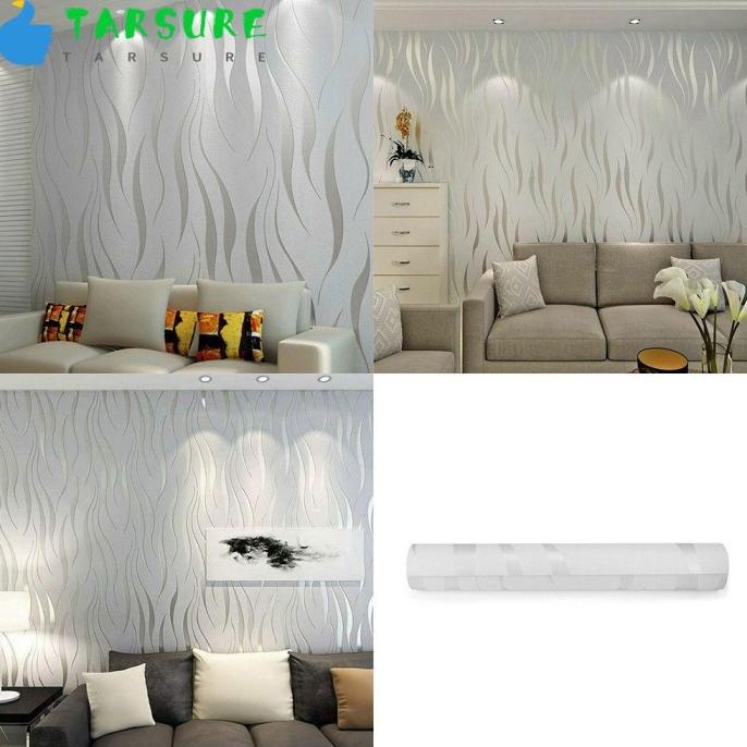 Tarsure Wallpaper Dinding 3D Warna Silver / Abu-Abu Metalik Untuk Deko Layyorra_Store