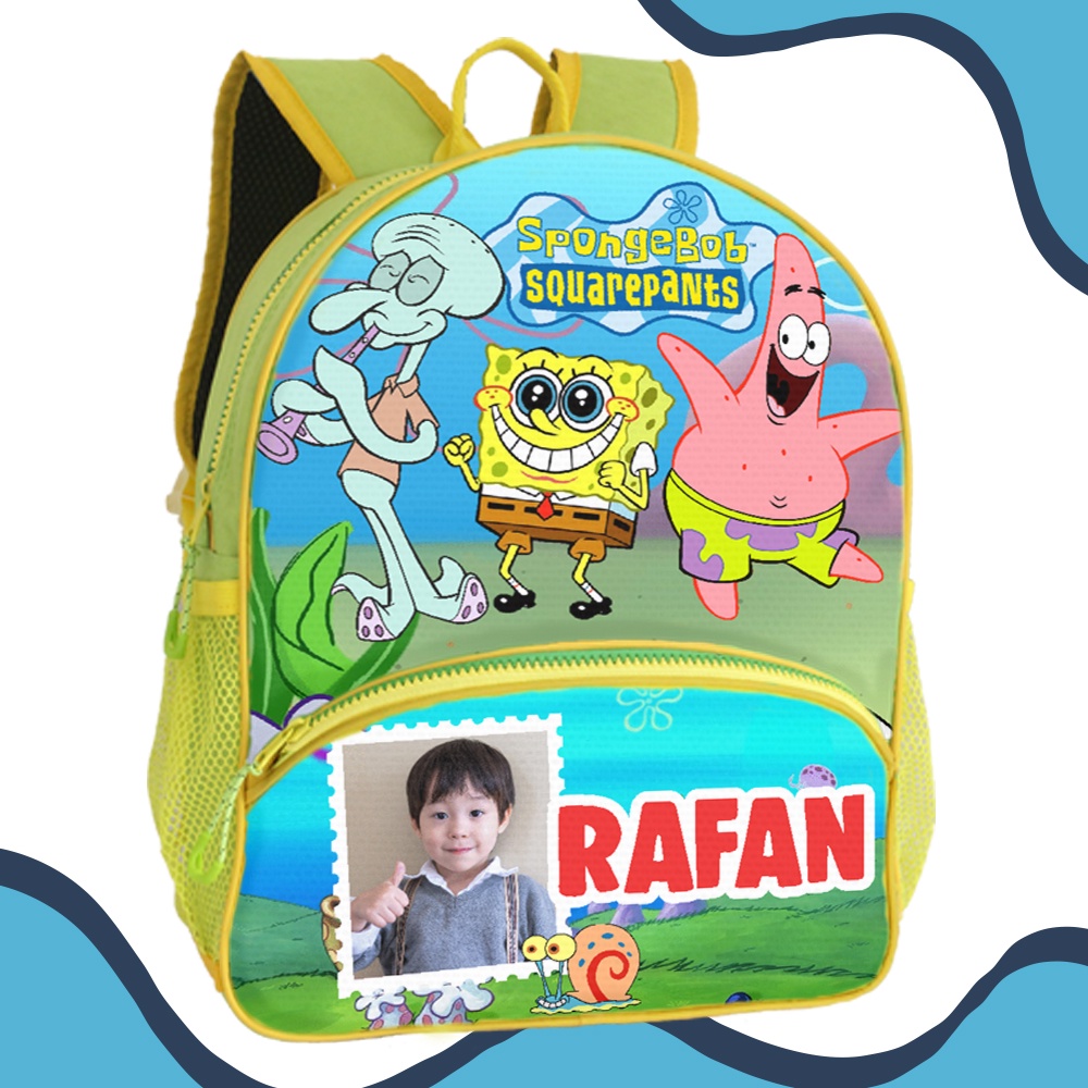 Tas Anak Custom Foto + Nama SPONGEBOB KARTUN COWO Tas Anak TK PAUD [Dexter] taspromosi2p