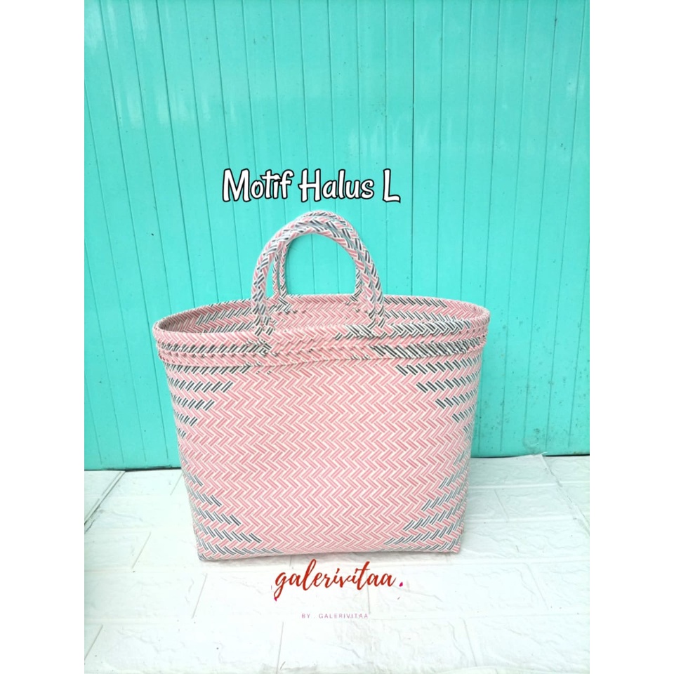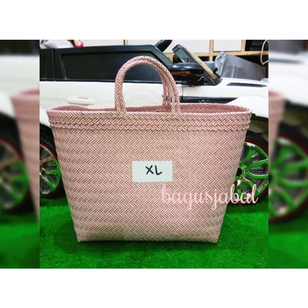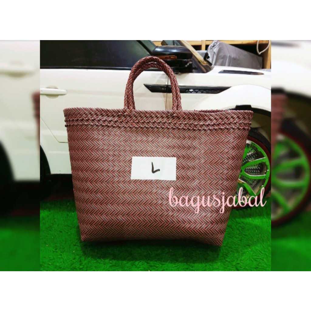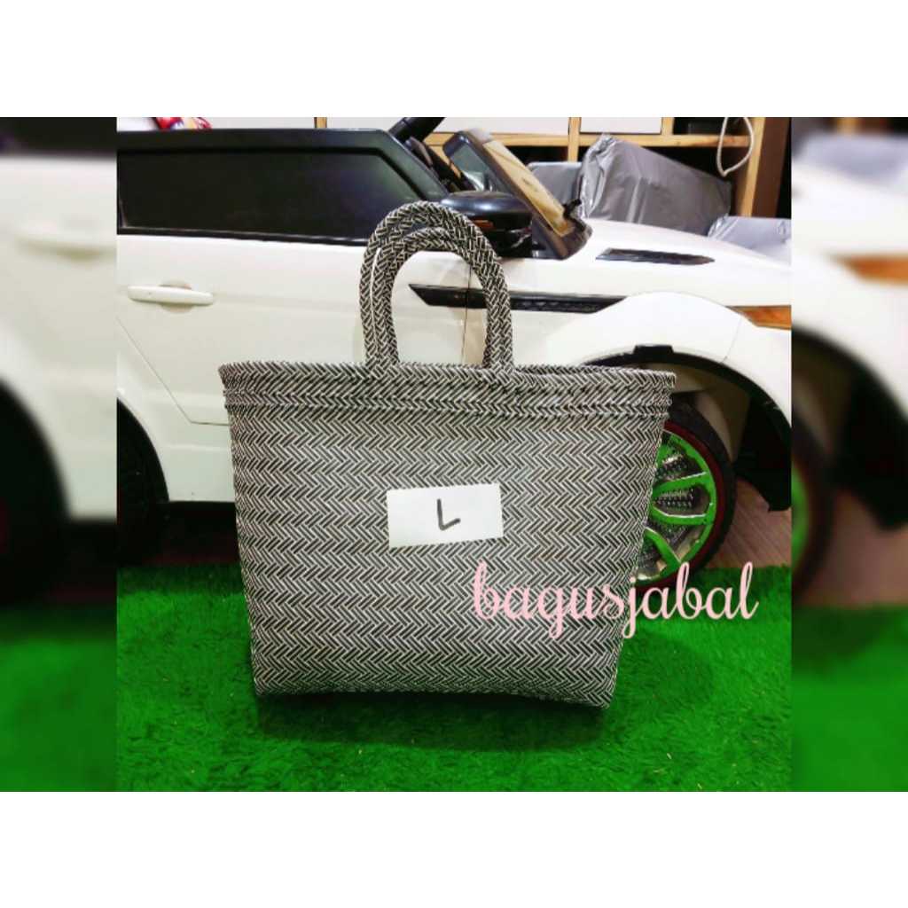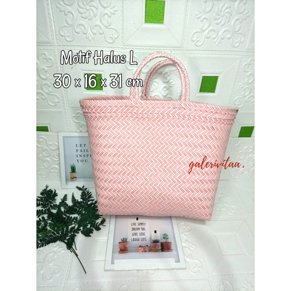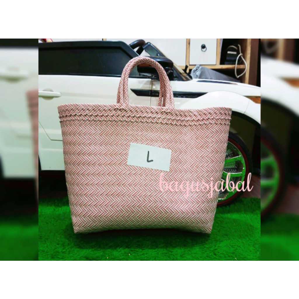 Tas Anyam Plastik Motif Halus Ukuran L / Tas Belanja / Tas Anyaman L 30 X 16 X 31 Cm