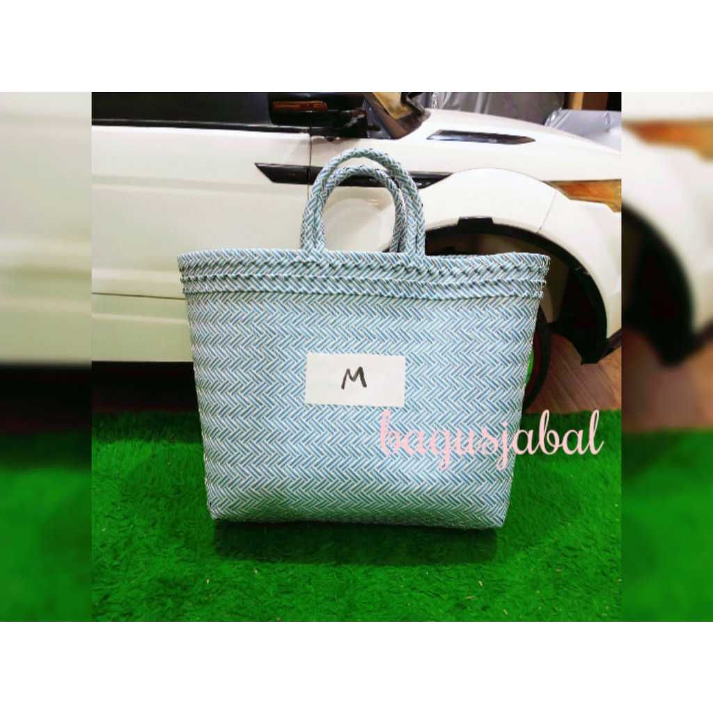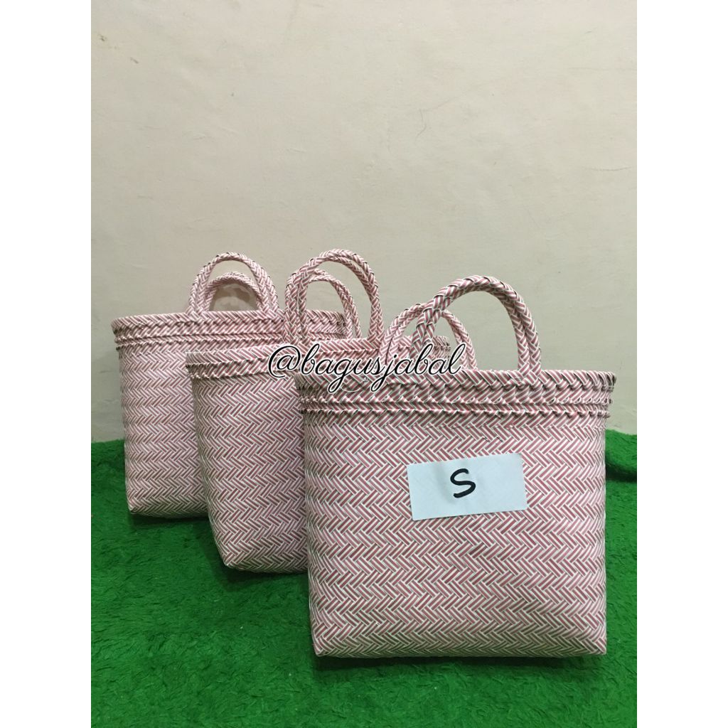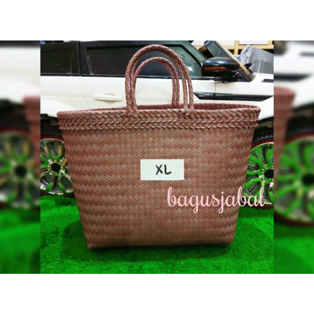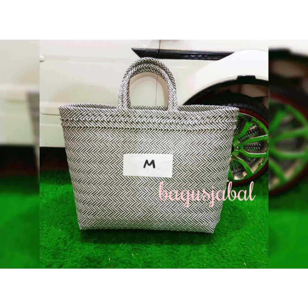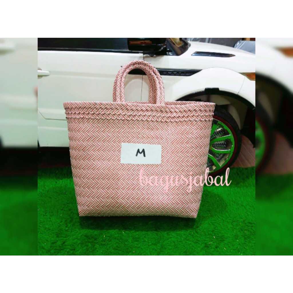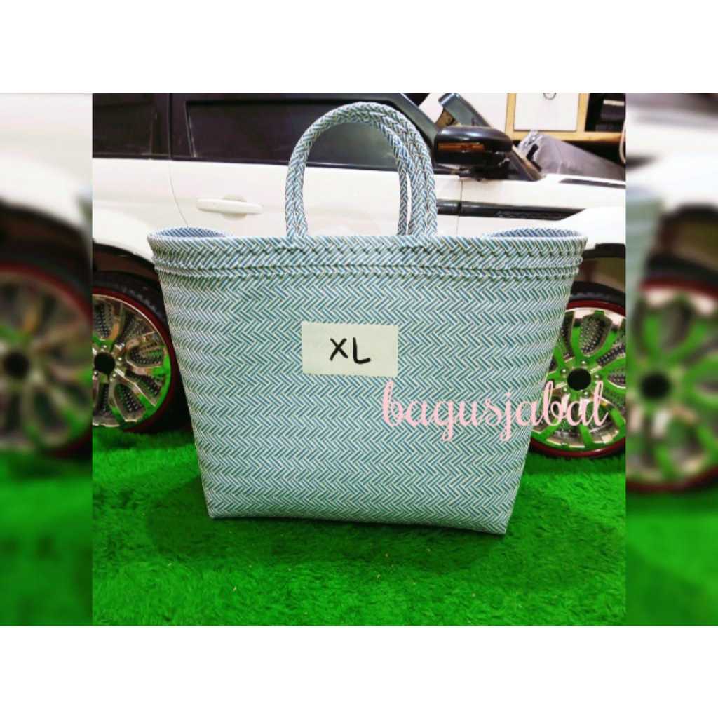 Tas Anyam Plastik Motif Halus Ukuran L / Tas Belanja / Tas Anyaman L 30 X 16 X 31 Cm