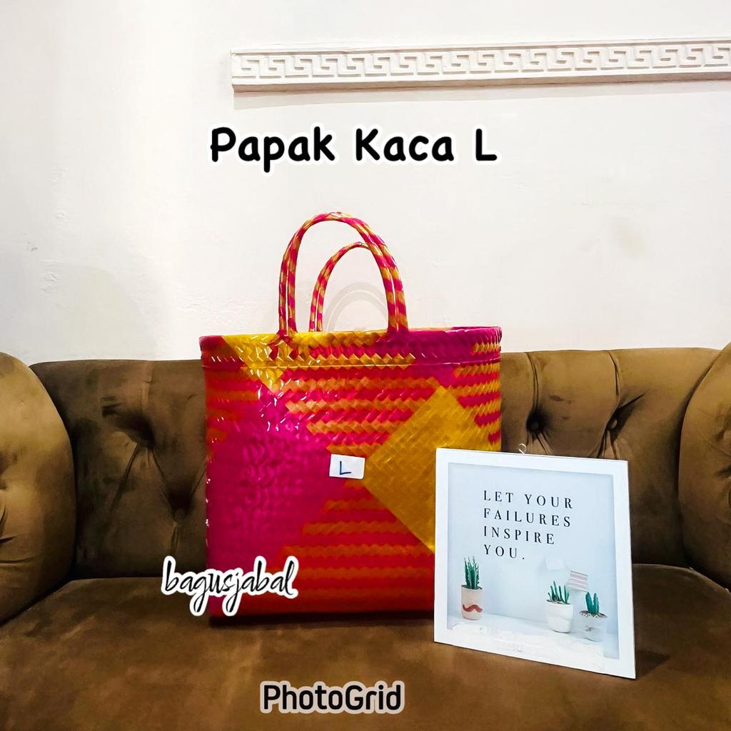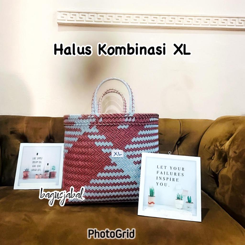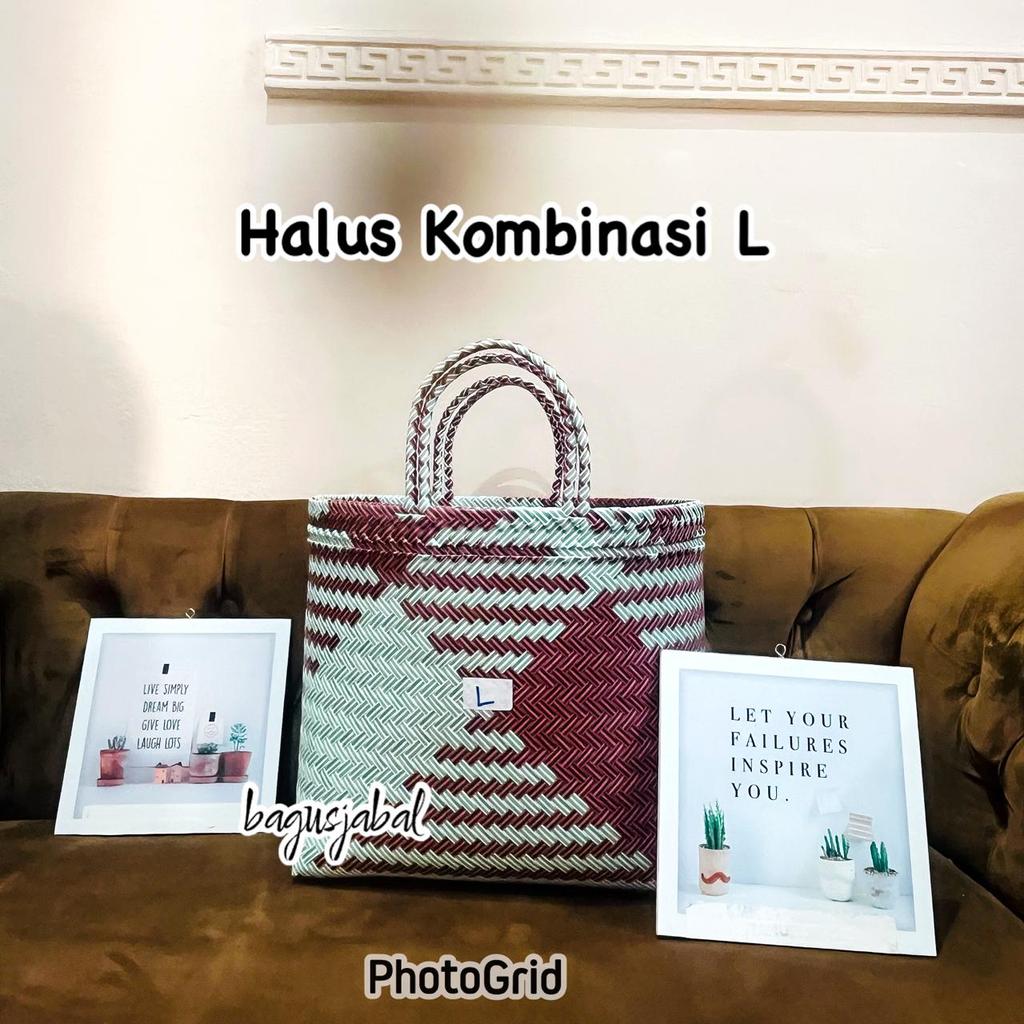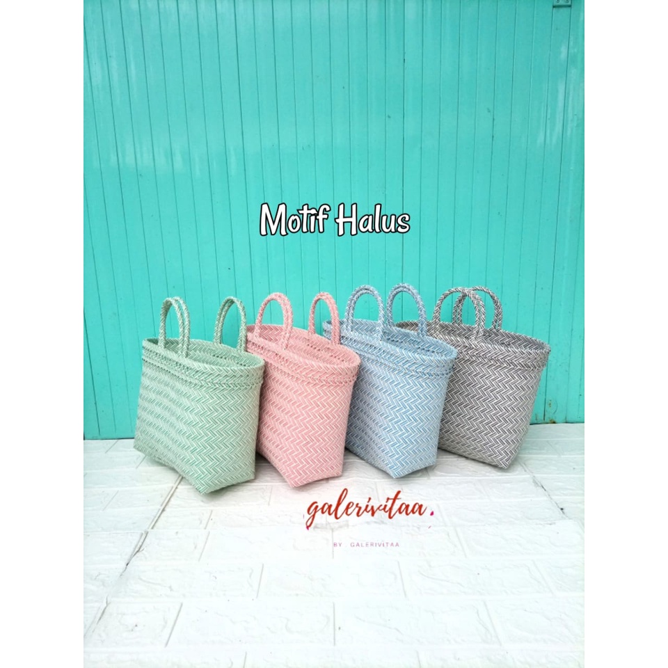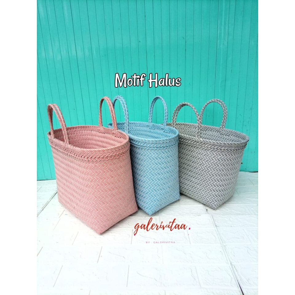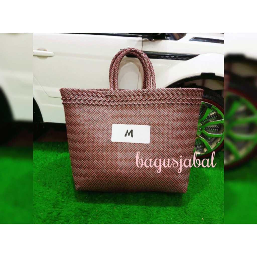 Tas Anyam Plastik Motif Halus Ukuran L / Tas Belanja / Tas Anyaman L 30 X 16 X 31 Cm