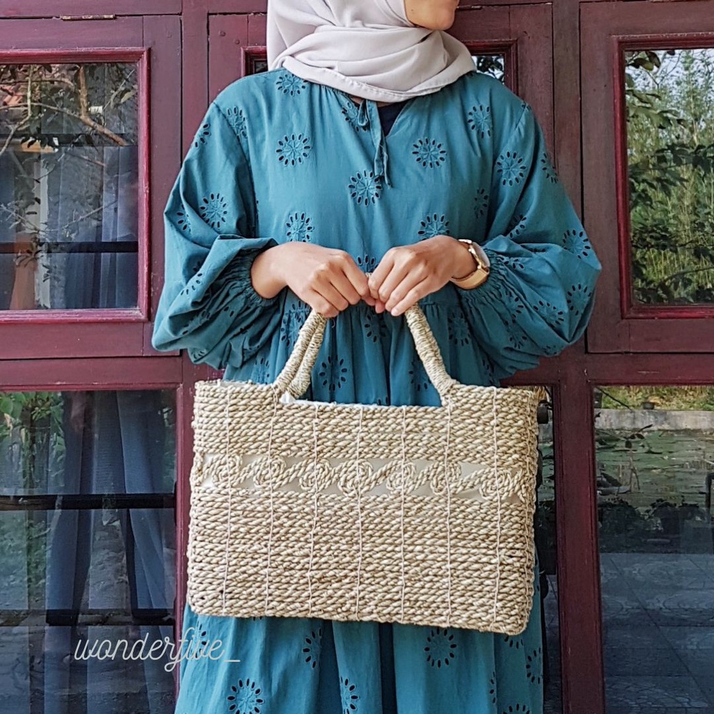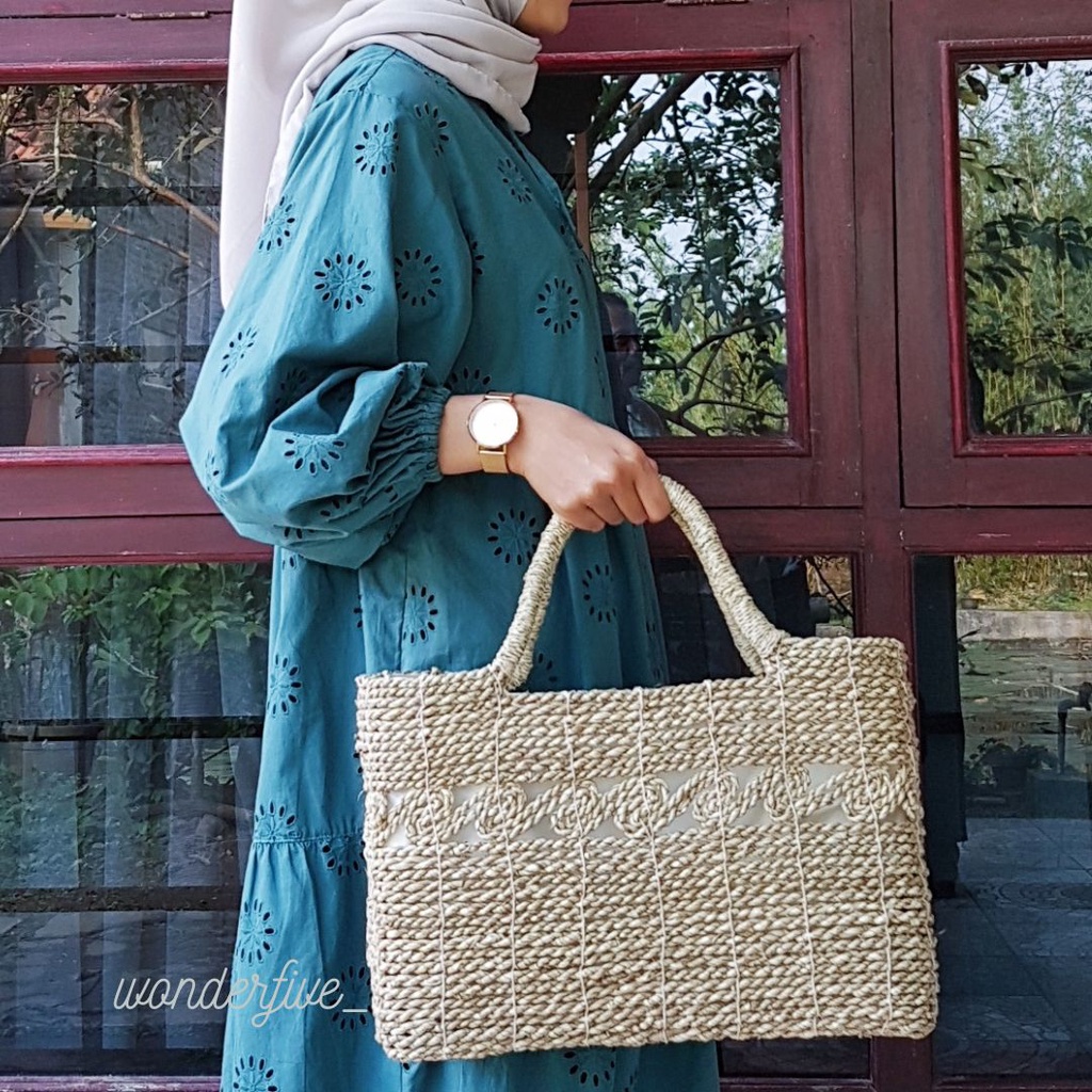 Tas Anyaman Kerajinan Rara Ukiran Bentuk Kotak / Tas Tote / Tas Etnik / Tas Bali / Tas Bangkok / Tas Mendong