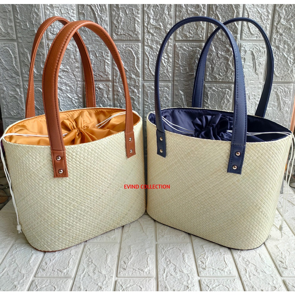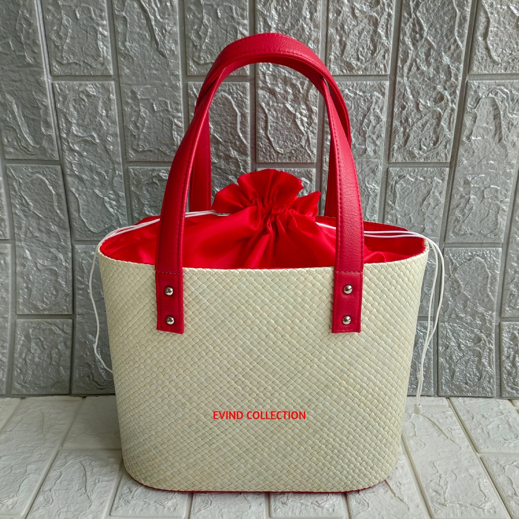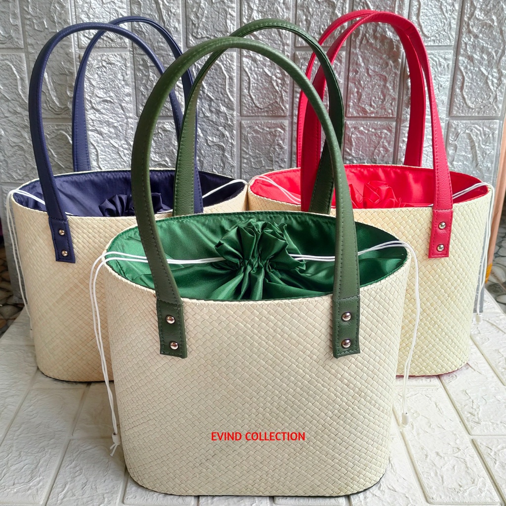 Tas Hampers Anyaman Pandan Ukuran M Model Oval Tali Kulit Sintetis Keranjang Parcel Anyaman Lebaran