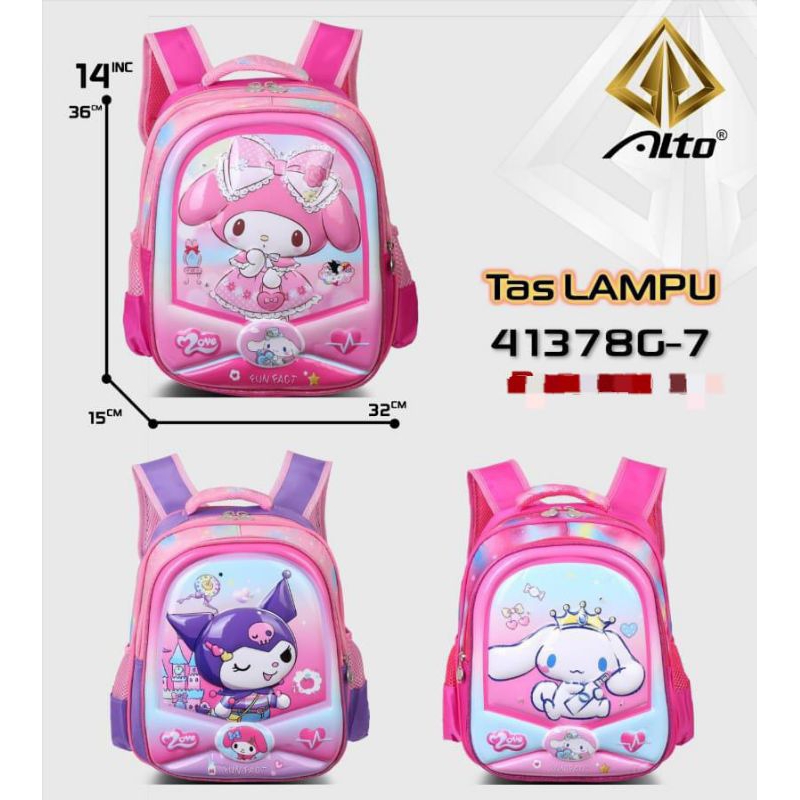 Tas Import karakter by Alto(Kuromi,Cinamoro,Melody,Pony)Anak Sekolah TK Perempuan Ada Lampu Led