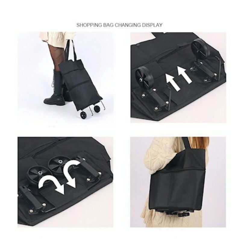 Tas Keranjang Kantong Troli Trolli Trolley Troly Tote Bag Belanja Troli Bag Lipat Barang Roda Besar Serbaguna Kain Supermarket Dorong Murah