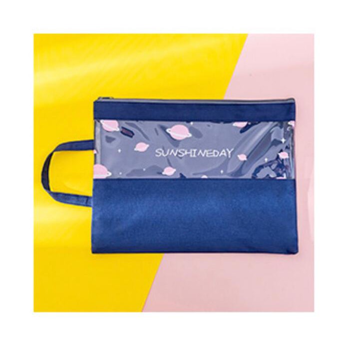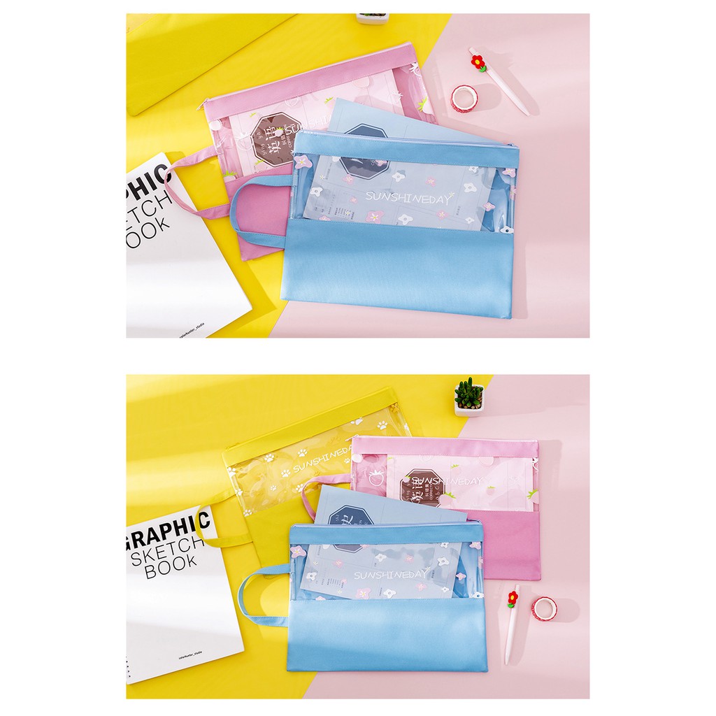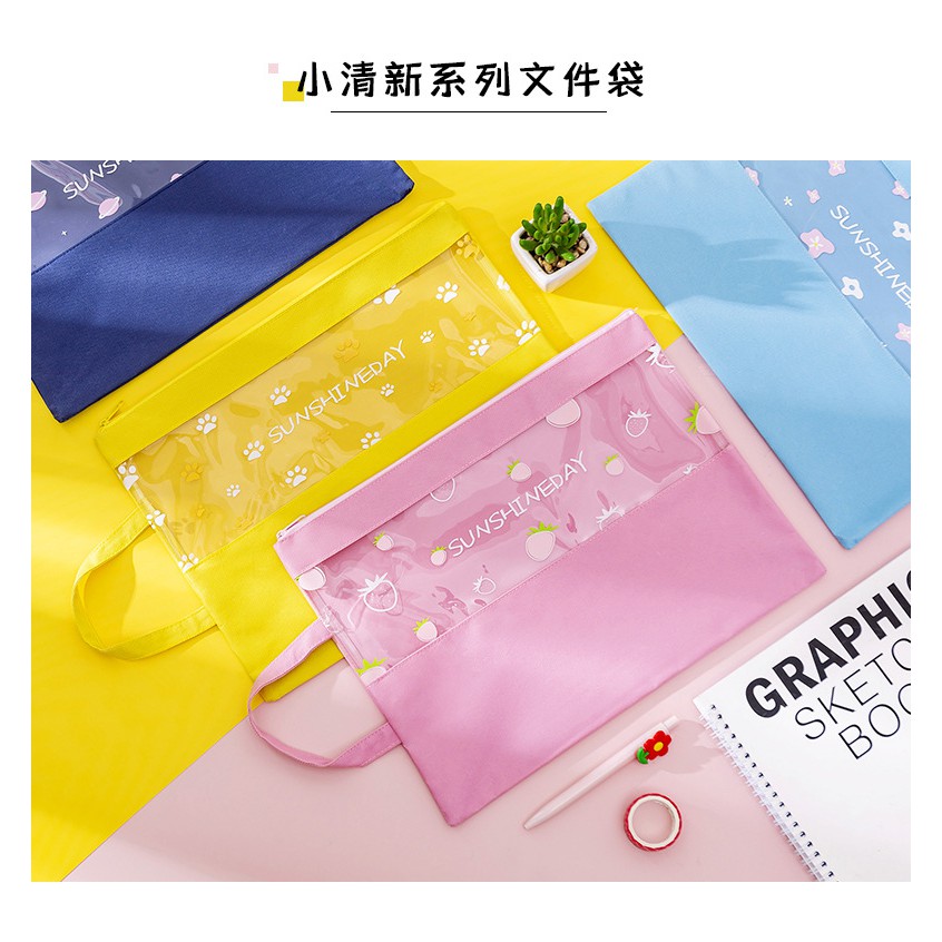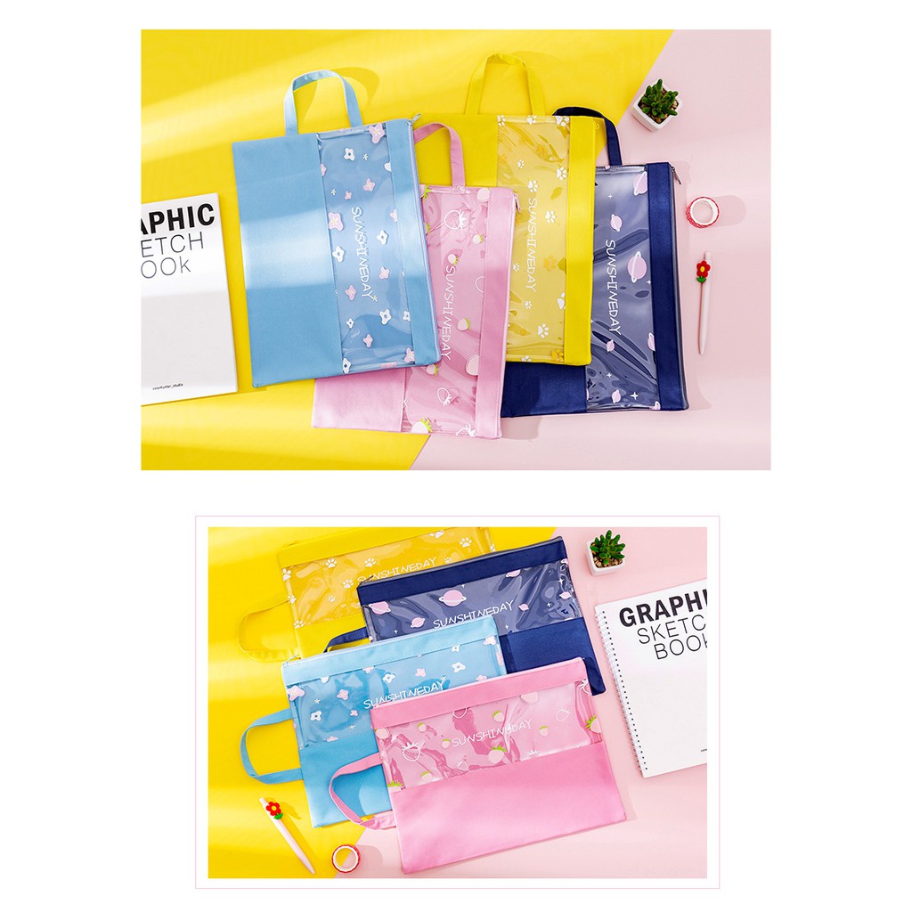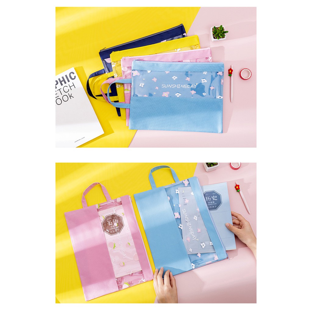 Tas Map/ Dokumen Ukuran A4, File, Simpan Laptop Bahan Kain Dengan Handle Motif Cantik Resleting