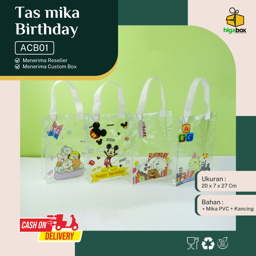 Tas Mika PVC Transparan / Tas PVC Polos Ulang Tahun Transparant Bening / tas bridesmaid / Tas Ultah / Tas Souvenir Ulang tahun Anak / Goodie Bag MIKA Transparan | AC01