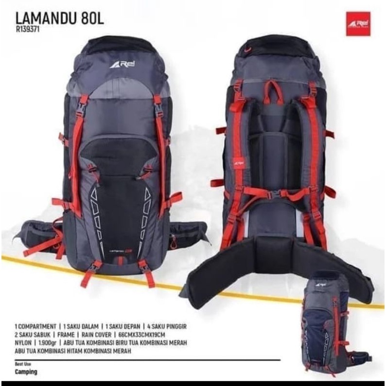 Tas Outdoor Rei Lamandu 80L / Tas Carrier Arei Rei Lamandu Tas Gunung Rei / Tas punggung / Tas Gunung / tas camping Arei Geiser 60L / arei toba 35L / arei toba 60L / Borealis 20 L / Tas gunung carrier original