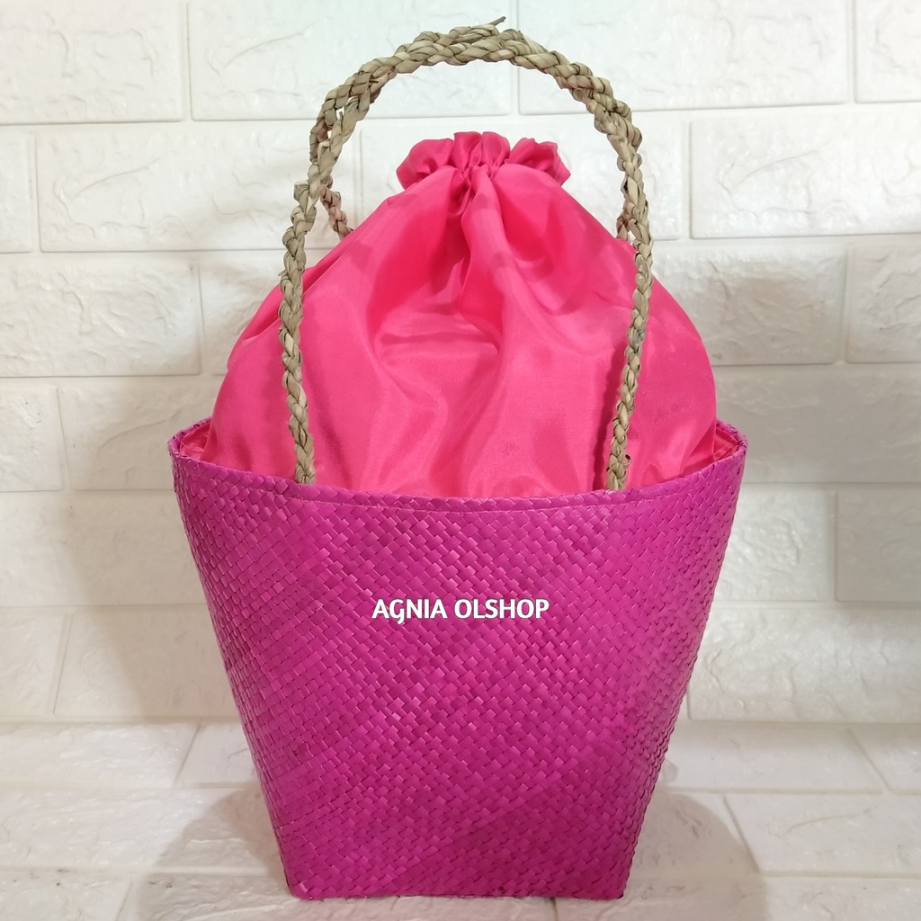 Tas Parcel Anyaman Pandan Model Bakul Tali Pandan Keranjang Parcel